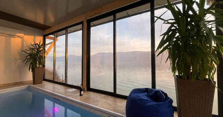 INFORMATII GENERALE Ambasador - Riviera 990 este localizata pe DN 57 in localitatea Eselnita, zona Cazanele Dunarii, la aproximativ 300 m de Pensiunea Riviera 990. DESCRIERE UNITATE DE CAZARE Este o locatie intima cu piscina chiar pe malul Dunarii, cu palmierii si plantele exotice care fac din aceasta o adevarata oaza de liniste. FACILITATI UNITATE Spatiile comune includ terasa si piscina exterioara cu sezlonguri care functioneaza doar in sezonul estival. Locatia dispune si de parcare proprie. DESCRIERE CAMERE In locatie exista doua camera duble cu pat matrimonial si cinci camere triple cu pat matrimonial si canapea de o persoana. Parter - o camera dubla cu terasa direct afara. Etaj 1- doua camere triple si o camera dubla toate cu balcon. Mansarda - doua camere triple si o camera dubla toate fara balcon dar cu vedere superba. Toate camerele sunt dotate cu TV si baie proprie. LOCALIZARE Ambasador - Riviera 990 este localizata pe DN 57 in localitatea Eselnita, zona Cazanele Dunarii, la aproximativ 300 m de Pensiunea Riviera 990. ATRACTII TURISTICE Pestera Gaura Chindiei II, Pestera Veterani, Pestera Haiducilor, Cetatea Trikule, Cetatea Ladislau, Cazanele Mari si Cazanele Mici, Chipul lui Decebal, Manastiri cum ar fi Vodita, Sfanta Ana, Mraconia. POLITICI Nu se accepta animale de companie. SERVICII DE MASA Micul dejun se serveste la Pensiunea Riviera 990 aflata la 300 m de Ambasador. FACILITATI COPII Copiii mai mari de 5 ani se pot caza numai in camera tripla. FACILITATI EVENIMENTE Locatia nu dispune de sala de evenimente.