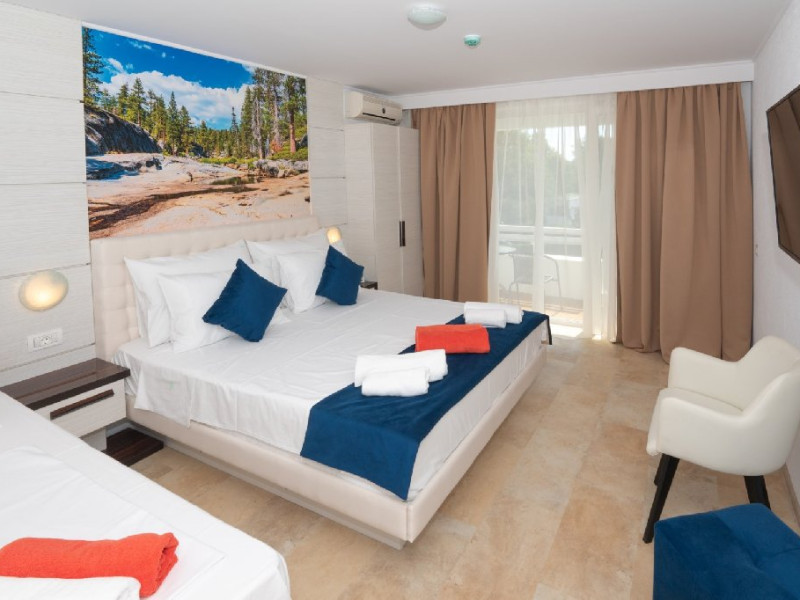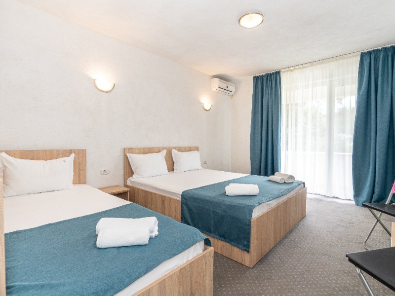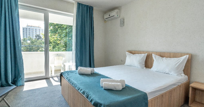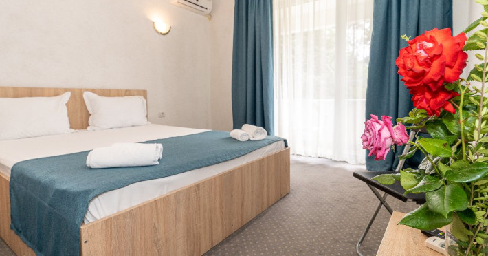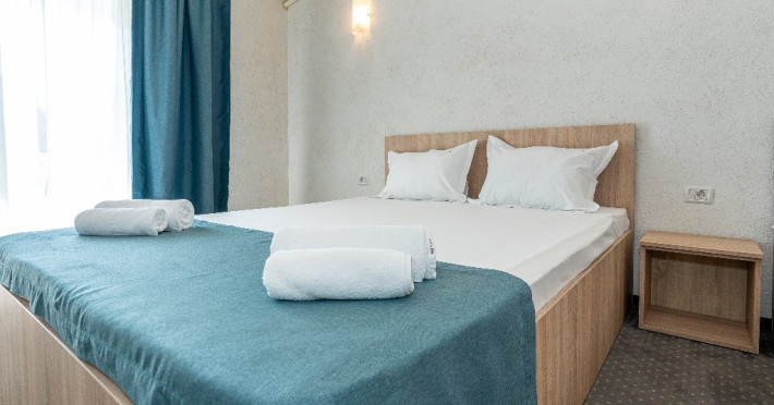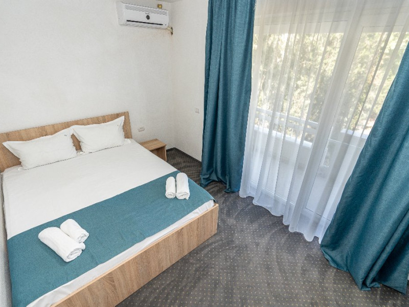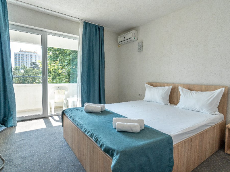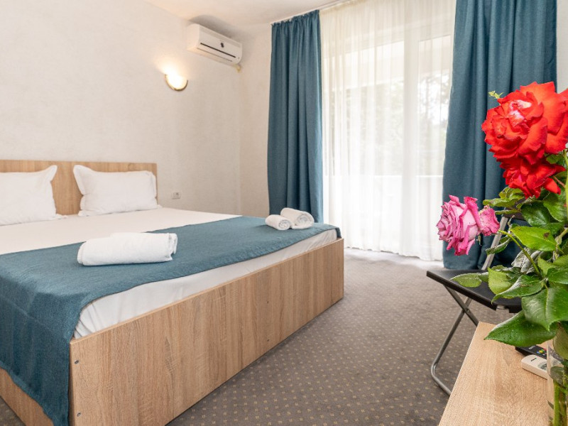 Hotel Irina Camera dubla matrimoniala are un pat matrimonial (160/200 cm). Recomandare: Camera Dubla poate gazdui 2 adulti si 1 copil. Dotari: sistem de acces in camera pe baza de cartela/cod de acces, aer conditionat, TV LCD, seif, baie cu cabina de dus, cosmetice hoteliere, balcon cu mobilier de terasa pentru camerele situate la etaj.Hotelul nu ofera paturi suplimentare.