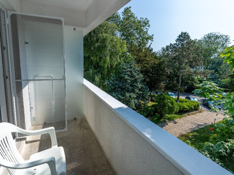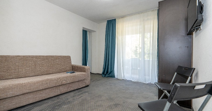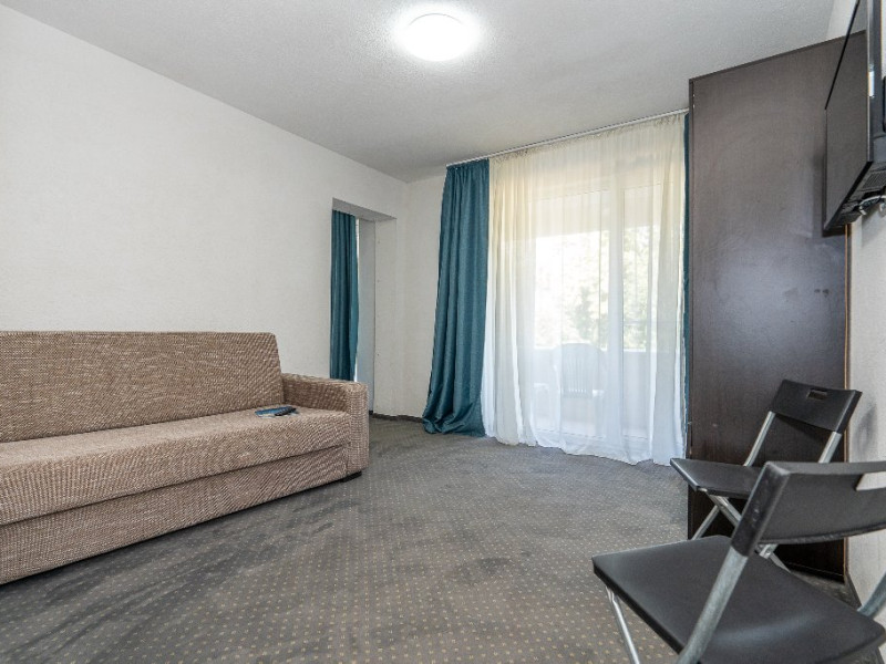 Apartamentul este un ansamblu compus din 1 dormitor cu pat matrimonial si un living cu o canapea extensibila si baie proprie Recomandare: Apartamentul poate gazdui pana la 3 adulti, sau 2 adulti si 2 copii. Dotari: sistem de acces in camera pe baza de cartela/cod de acces, aer conditionat, TV LCD, seif, baie cu cabina de dus, cosmetice hoteliere, balcon cu mobilier.