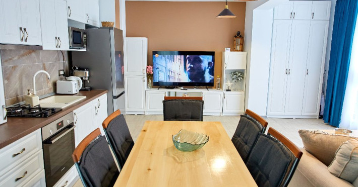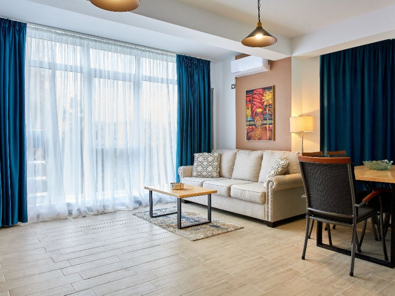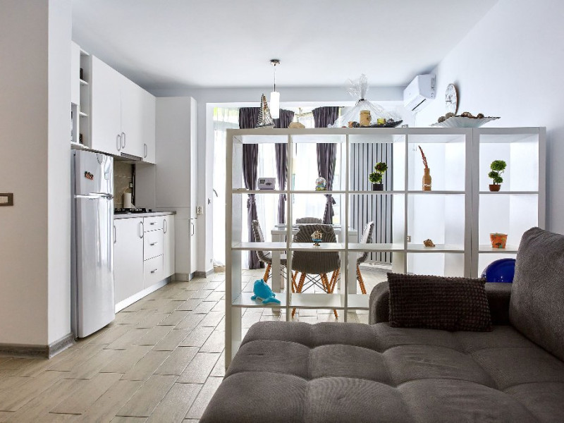 Lawyers Apartment Situat la malul marii in cel mai mare si complex resort din Mamaia Nord, Complex Alezzi, Lawyers Apartment va ofera un concediu de neuitat pe litoralul romanesc. Datorita pozitiei la un etaj superior aveti parte de un peisaj extraordinar de frumos catre mare si plaja. Apartamentul este ideal atat pentru familii cu copii si nu numai. Alcatuit din 2 camere, va pune la dispozitie pat matrimonial, canapea extensibila, 2 smart TV. Bucataria este mobilata si utilata modern si nou, cu electronice si electrocasnice de buna calitate. Lawyers Apartment Alezzi este o locatie primitoare, vesela care va binedispune si va ofera un aer familiar. Apartamentul este foarte spatios, fiind amplasat intr-o cladire noua. Acesta beneficiaza de un interior placut si relaxant, oferind o priveliste de vis de pe terasa. Proprietatea are aparat de aer conditionat, precum si TV cu o diagonala de 140 in living si TV in dormitor de 110, cu o gama variata de posturi. Oaspetii nostri au acces nelimitat la internet prin wi-fi de mare viteza, electrocasnice (apartamentul fiind dotat cu tot ce este necesar, inclusiv masina de spalat). Cumparaturile sunt usor accesibile. Pentru recreere si timp petrecut cu prietenii gasiti in resort cafenele, terase, restaurante. Imobilul va ofera gratuit acces la piscina interioara si exterioara, loc de joaca pentru copii, sauna, jacuzzi, sala fitness.