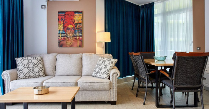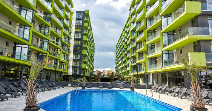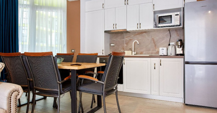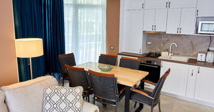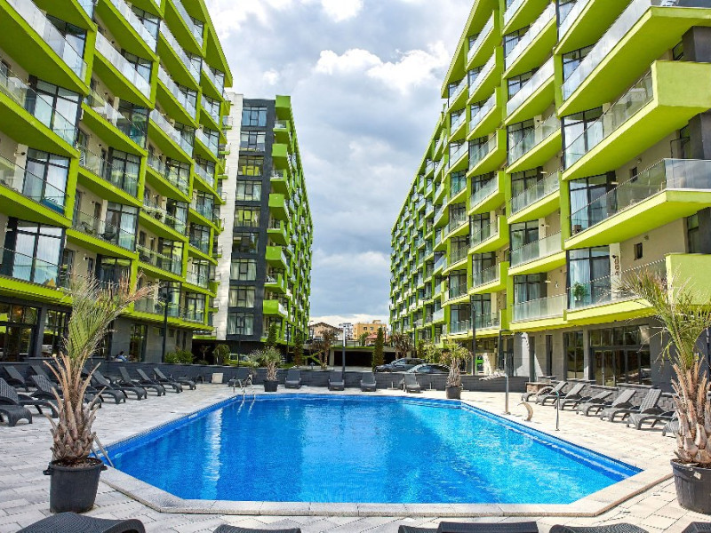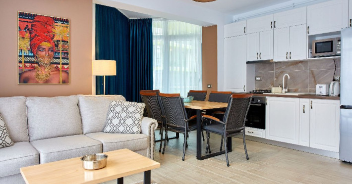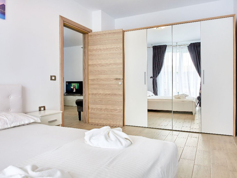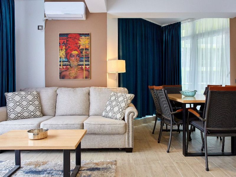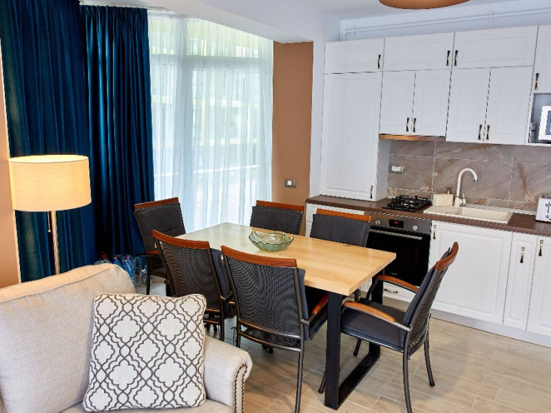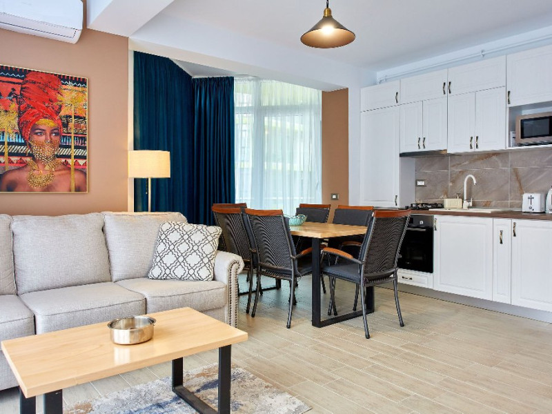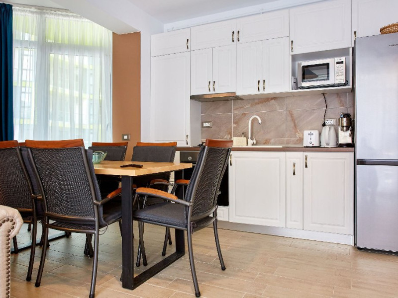 SPA Sala de fitness Sauna umeda si uscata Piscine sezoniere in aer liber pentru adulti si pentru copii Jacuzzi interior Loc de joaca pentru copii Gradina Apartamentul este mobilat si utilat modern si dispune de: