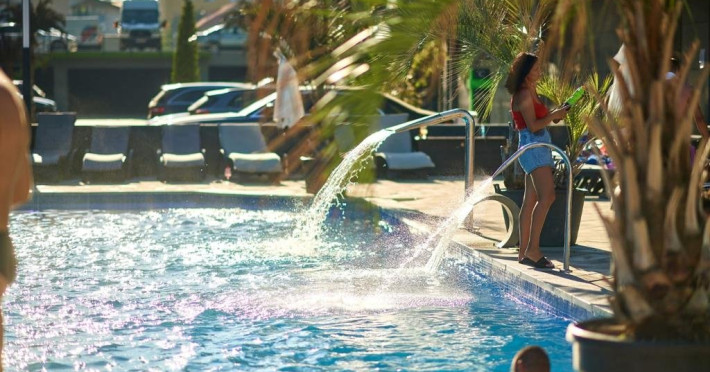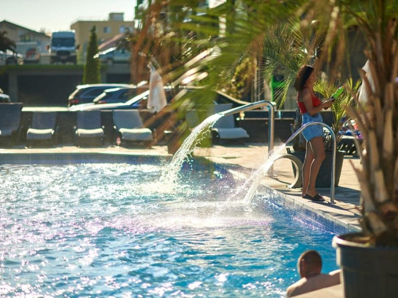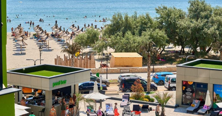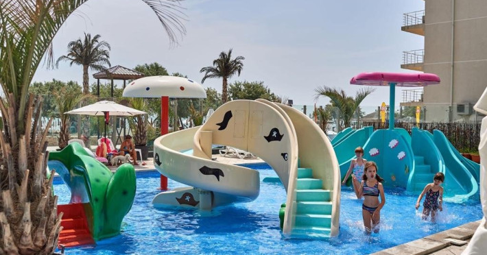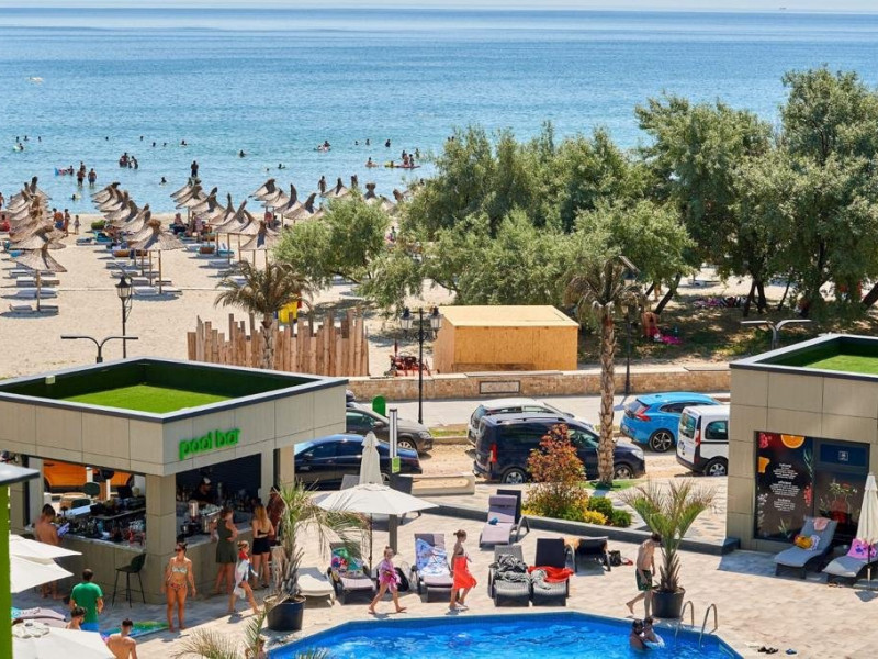 Distanta pana la plaja si Promenada : 20 m 2 camere (dormitor + living) - 62 mp Locuri de cazare : 4 + 1 copii Etaj 8 (bloc cu lift) - statiunea Mamaia Nord, strada D13 nr. 6D, Bl B8, et. 8 complex Alezzi Balcon cu iesire din toate camerele Complexul Alezzi dispune de 4 restaurante, gelaterie, lounge ( bar + terasa ) si farmacie. Amplasat in complexul rezidential Alezzi - Beach Resort, turistii beneficiaza de urmatoarele facilitati gratuite ale complexului :