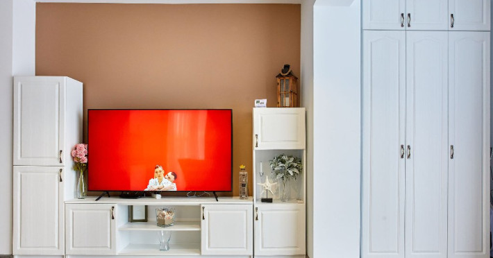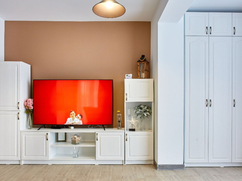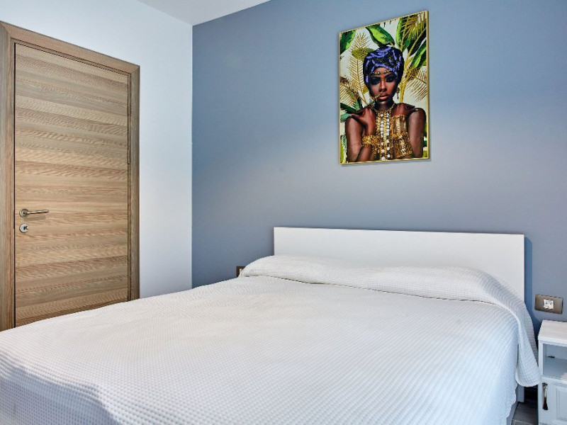 Living ( cu canapea extensibila ) Dormitor cu pat matrimonial Dressing Aer conditionat 2 smart TV cu diagonala 108, respectiv 100 Bucatarie utilata complet Baie cu cabina de dus Masina de spalat Wi-fi gratuit Terasa cu vedere la mare pe toata suprafata apartamentului, cu iesire din fiecare camera Mobilier pe terasa