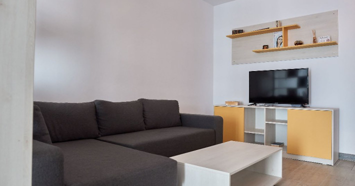 Acest apartament de 2 camere (dormitor + living) ofera un pat matrimonial confortabil, o canapea extensibila spatioasa, un decor elegant si Smart TV. Atmosfera calda si primitoare te va face sa te simti ca acasa, iar designul modern contribuie la un sejur relaxant si revigorant.