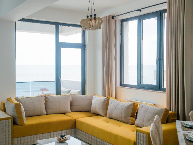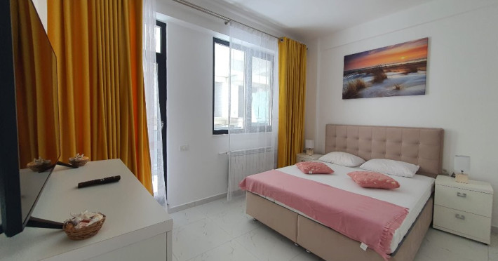 Apartament cu 2 camere ofera o vedere frontala la mare si este situat la doar 10 metri de plaja si promenada, in apropierea plajei Signature din Mamaia Nord. Apartamentul se afla la etajul 2 al unui bloc cu lift si va ofera posibilitatea de a va bucura de privelistea frumoasa a marii chiar din confortul propriului apartament. Capacitatea de cazare a apartamentului este de 4 adulti si 1 copil, asigurandu-va un sejur placut si relaxant pe malul marii. Parcarea privata este disponibila pentru a va asigura ca masina dumneavoastra este in siguranta si usor accesibila in timpul sederii. In apropiere, veti gasi restaurante populare, cum ar fi Ohi Ohi si Cherhana, oferindu-va o varietate de optiuni culinare pentru a va bucura de preparate delicioase in timpul vacantei dumneavoastra. Apartamentul este complet mobilat si utilat modern, creand un mediu confortabil si functional pentru o experienta de neuitat pe litoralul romanesc. Livingul este dotat cu o canapea extensibila, oferindu-va un spatiu suplimentar pentru relaxare si divertisment. Dormitorul dispune de un pat matrimonial. Bucataria este complet utilata, asigurandu-va ca aveti tot ce aveti nevoie pentru a pregati si savura mesele in intimitatea apartamentului dumneavoastra. Veti gasi o plita, cuptor, cafetiera si frigider pentru a va satisface nevoile culinare. Baia dispune de o cabina de dus, pentru a va oferi o experienta placuta si revigoranta in timpul dusului. Aerul conditionat este disponibil in apartament pentru a va mentine temperatura optima si confortabila pe parcursul intregii zile. Terasa apartamentului ofera o vedere frontala la mare si este accesibila atat din living, cat si din dormitor, oferindu-va o oportunitate unica de a savura privelistea marii in timp ce va bucurati de o bautura racoritoare sau o cafea. Va invitam sa alegeti acest apartament pentru o experienta de neuitat la malul marii, intr-unul dintre cele mai frumoase si populare locuri de vacanta din Romania - Mamaia Nord. Etaj - 3 4 adulti + 1 copil, 1 canapea extensibila, Parcare privata, Vedere la mare, 1 pat dublu