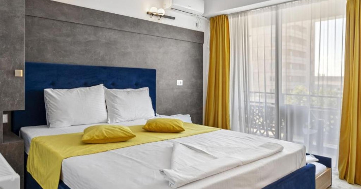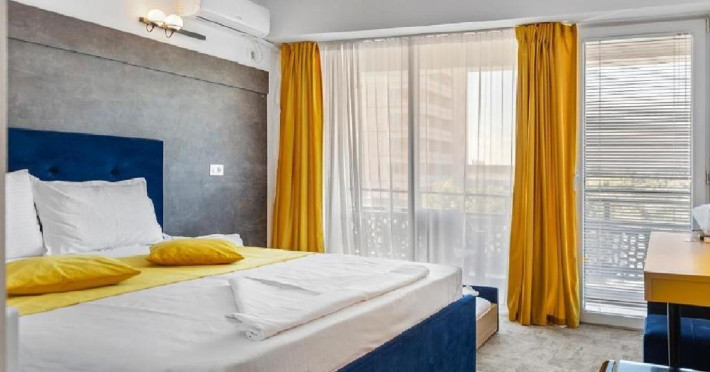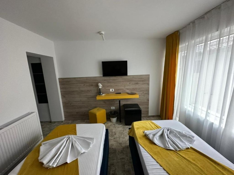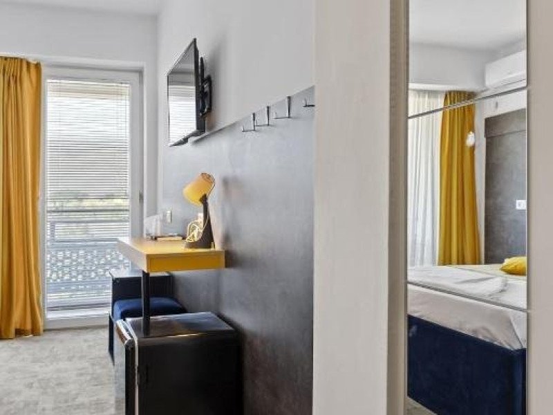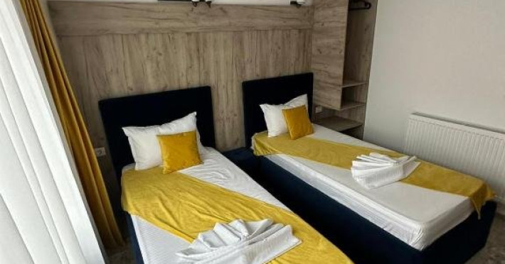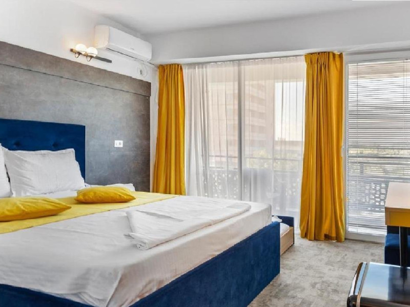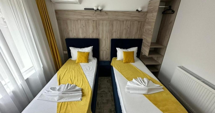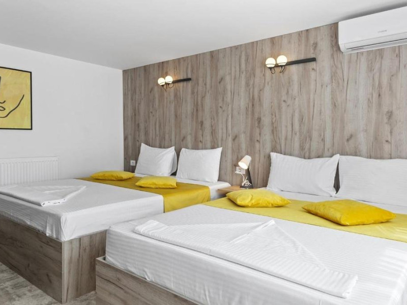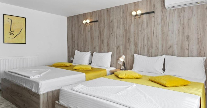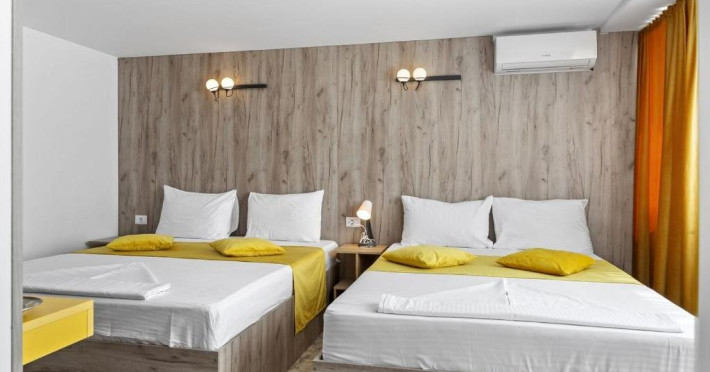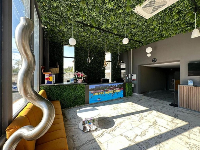 Hotel Aqua Park 3*** Eforie Nord (fostulhotel Meteor) a fost renovat in totalitate 2020 - 2021 si a fostreclasificat de la 2 la 3 stele, iar in 2023 i-au mai fost aduse imbunatatiripe zona de receptie. Hotel Aqua park ofera cazare in 152 spatiide cazare, dotate cu mobilier nou, bai renovate cu dus si dotarispecifice, aer conditonat, frigider, TV, telefon, uscator de par, pardosealadin mocheta/pvc, internet wireless, balcon cu mobilier, plasa pentrutantari, acces pe baza de cartela. Hotel Aqua Park are parter si 4 etaje sieste deservit de lift. Hotel Aqua Park reprezinta o varianta atractivade cazare pentru toate categoriile de turisti, oferind in mod gratuit, acces la Aqua Park Eforie Nord (situat la10 minute de mers de hotel -cea mai cunoscuta atractie turistica astatiunii. Aici turistii se pot bucura de piscinele spatioase, tobogane siactivitatile organizate in fiecare zi (spectacole, concursuri etc). Hotel Aqua Park este situat in partea de sud astatiunii, pe varianta care tranziteaza Eforie Nord, langa hotelurile Traian,Tropical si Ovicris. Distanta pana la plaja poate fi parcursa pe jos in 10minute. Lacul Techirghiol se afla la 100 de metri de hotel, ceea ce face dinHotel Aqua Park o varianta atractiva si pentru persoanele care doresc sa beneficiezede proprietatile terapeutice ale namolului si apei din lac. Dotari Camere Toate camerele hotelului Aqua Park au mobiliernou, pat matrimonial sau 2 paturi de o persoana care se unesc complet, bai cudus, aer conditonat, frigider, televizor, telefon, uscator de par, pardosealaacoperita cu mocheta, internet wireless, balcon cu mobilier, plasa pentrutantari, acces pe baza de cartela. Pot fi dotate cu pat matrimonial (160x200)sau 2 paturi twin (90x200), repartizarea se face la momentul cazarii, inreceptie. Suprafata aproximativ 15 mp. Camerele duble family sunt situate cate una pe fiecareetaj, si au in dotare 2 paturi matrimoniale de 160/200 cm si 140/200 cm, baiecu cada. Suprafata aproximativ 20 mp Apartamentul este situat la etajul 1, si are in dotare undormitor cu pat matrimonial si un living cu canapea extensibila. Accesul seface intai in living, apoi din living in dormitor. Exista usaseparatoare. Alte Specificatii Ora check-in:16:00Ora check-out: 11:00 Pentru acest hotel seachita la receptie in ziua cazarii, o Taxa de statiune in valoare de 5 lei/adult/zi Parcarease ofera contra cost in limita disponibilitatii, se achita la receptie otaxa de 25 lei/zi.