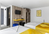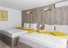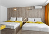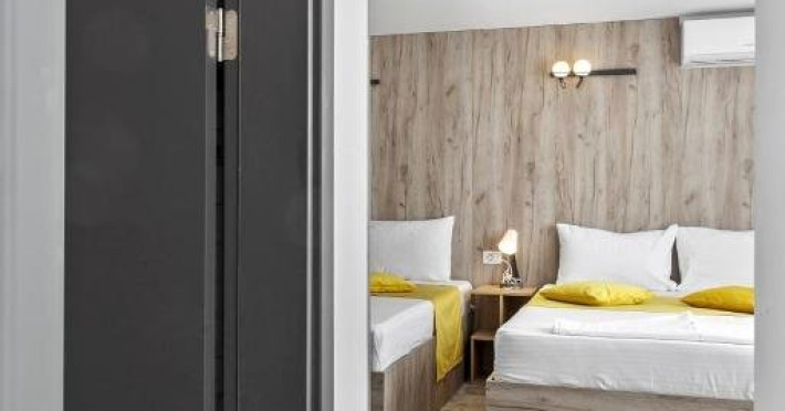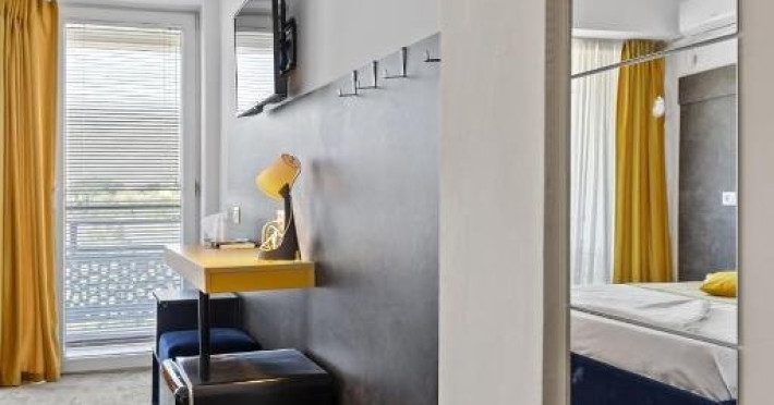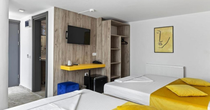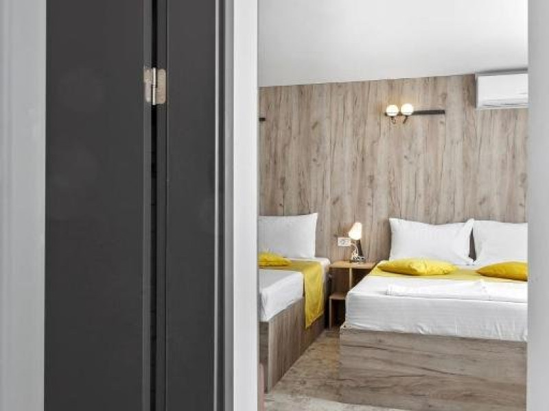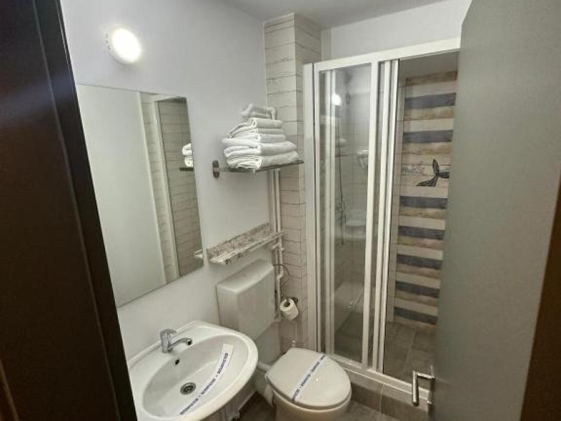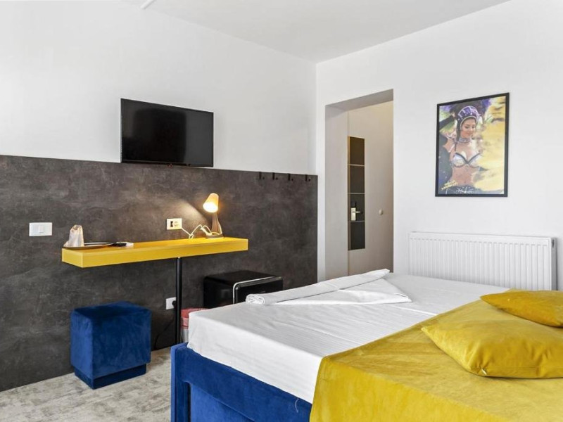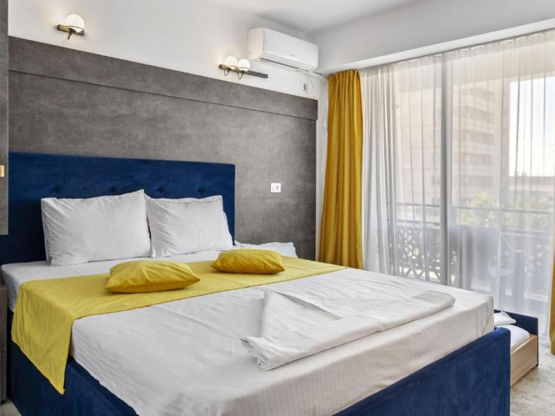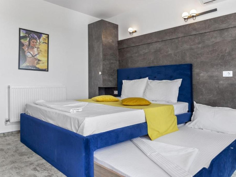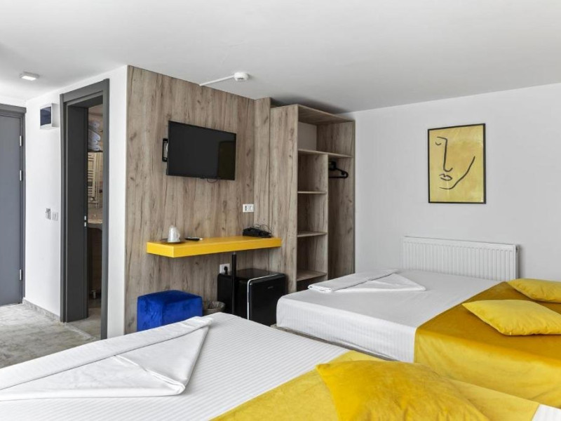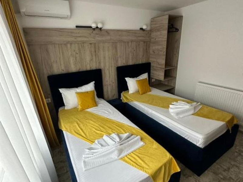 Hotel Aqua Park 3*** Eforie Nord (fostulhotel Meteor) a fost renovat in totalitate 2020 - 2021 si a fostreclasificat de la 2 la 3 stele, iar in 2023 i-au mai fost aduse imbunatatiripe zona de receptie. Hotel Aqua park ofera cazare in 152 spatiide cazare, dotate cu mobilier nou, bai renovate cu dus si dotarispecifice, aer conditonat, frigider, TV, telefon, uscator de par, pardosealadin mocheta/pvc, internet wireless, balcon cu mobilier, plasa pentrutantari, acces pe baza de cartela. Hotel Aqua Park are parter si 4 etaje sieste deservit de lift. Hotel Aqua Park reprezinta o varianta atractivade cazare pentru toate categoriile de turisti, oferind in mod gratuit, acces la Aqua Park Eforie Nord (situat la10 minute de mers de hotel -cea mai cunoscuta atractie turistica astatiunii. Aici turistii se pot bucura de piscinele spatioase, tobogane siactivitatile organizate in fiecare zi (spectacole, concursuri etc). Hotel Aqua Park este situat in partea de sud astatiunii, pe varianta care tranziteaza Eforie Nord, langa hotelurile Traian,Tropical si Ovicris. Distanta pana la plaja poate fi parcursa pe jos in 10minute. Lacul Techirghiol se afla la 100 de metri de hotel, ceea ce face dinHotel Aqua Park o varianta atractiva si pentru persoanele care doresc sa beneficiezede proprietatile terapeutice ale namolului si apei din lac. Dotari Camere Toate camerele hotelului Aqua Park au mobiliernou, pat matrimonial sau 2 paturi de o persoana care se unesc complet, bai cudus, aer conditonat, frigider, televizor, telefon, uscator de par, pardosealaacoperita cu mocheta, internet wireless, balcon cu mobilier, plasa pentrutantari, acces pe baza de cartela. Pot fi dotate cu pat matrimonial (160x200)sau 2 paturi twin (90x200), repartizarea se face la momentul cazarii, inreceptie. Suprafata aproximativ 15 mp. Camerele duble family sunt situate cate una pe fiecareetaj, si au in dotare 2 paturi matrimoniale de 160/200 cm si 140/200 cm, baiecu cada. Suprafata aproximativ 20 mp Apartamentul este situat la etajul 1, si are in dotare undormitor cu pat matrimonial si un living cu canapea extensibila. Accesul seface intai in living, apoi din living in dormitor. Exista usaseparatoare. Alte Specificatii Ora check-in:16:00Ora check-out: 11:00 Pentru acest hotel seachita la receptie in ziua cazarii, o Taxa de statiune in valoare de 5 lei/adult/zi Parcarease ofera contra cost in limita disponibilitatii, se achita la receptie otaxa de 25 lei/zi.