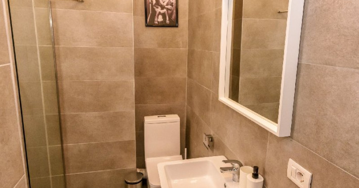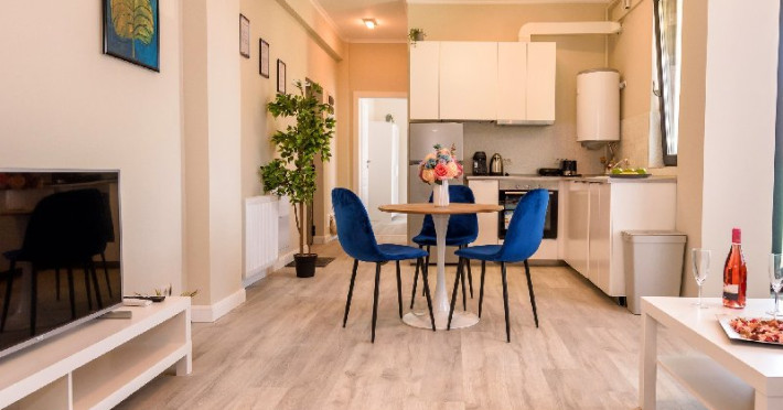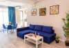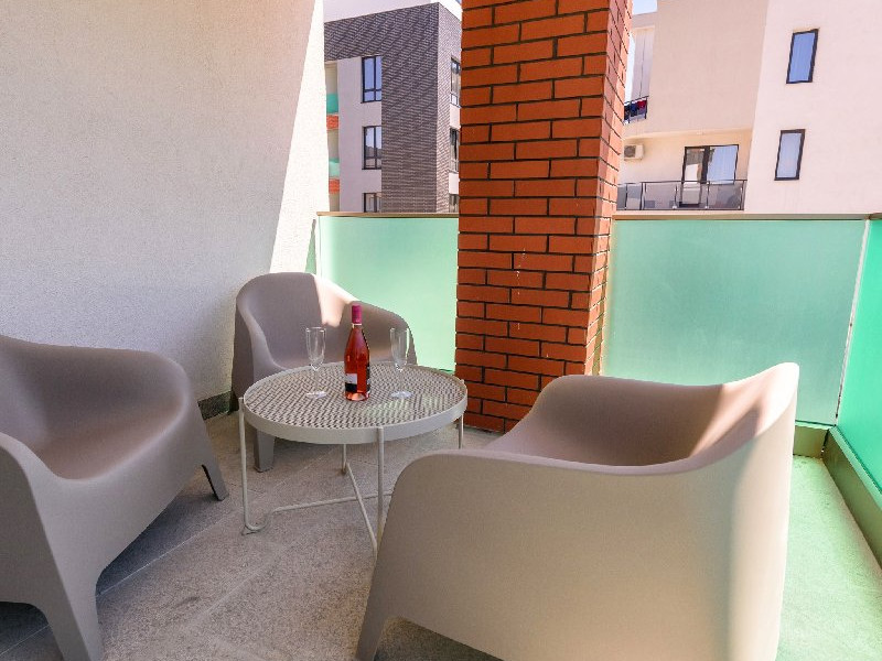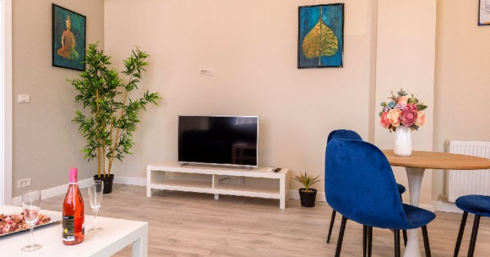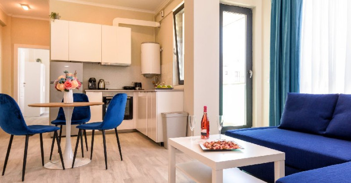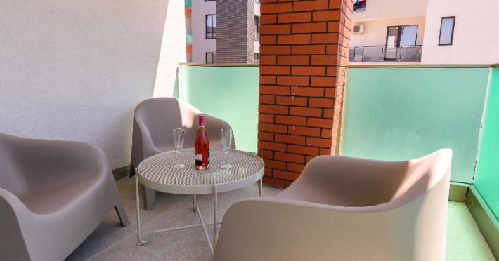 Ap cu un dormitor nr. 408 Capacitate maxima : 4 persoane Suprafata : 48 mp Etaj : Etaj 2 Terasa : Da , masa si scaune Structura ap : Living : Canapea extensibila 2 persoane (160 x 200 cm) , aer conditionat , dulap haine , masa si scaune pt servit mancarea , TV smart 108 cm diagonala , masa de calcat , fier de calcat , uscator de rufe Bucatarie : plita , cuptor , hota , frigider , espressor , sandwich maker , prajitor de paine , fierbator de apa , masina de spalat rufe Baie : dus , wc , lavoar , oglinda baie , Dormitor : Pat matrimonial (160 x 200 cm) , TV LED diagonala 81 cm , dulap haine, uscator de par