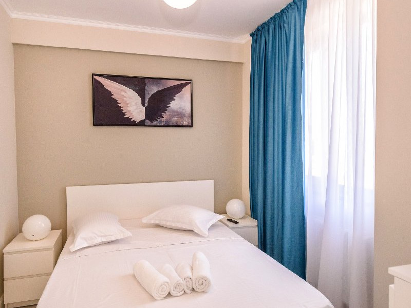 FACILITATI UNITATE Dotari generale: casa scarii placata cu granit, lift de persoane, fiecare apartament are alocat un loc de parcare, cablu tv, internet wifi, plase de tantari, pardoseala de parchet, se accepta animale de companie, nu avem acces special pt persoana cu dizabilitati. Check in : 16:00 Check out : 11:00 Apartamentele se predau cu curatenia facuta , 2 prosoape mari + 2 prosoape mici / pat . Se ofera o alta curatenie si schimb de lenjerii si prosoape pt sejururi mai mari de 7 zile . Check in pe baza de cod de acces pe care oaspetii nostrii il primesc automat pe email in ziua de check in .