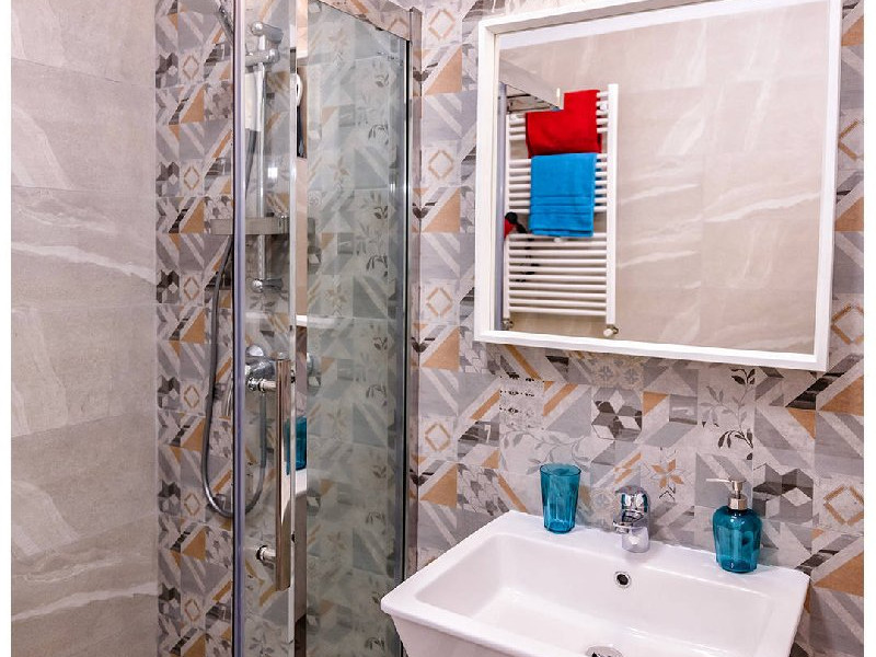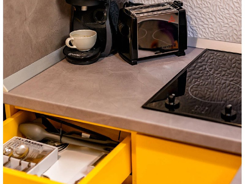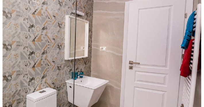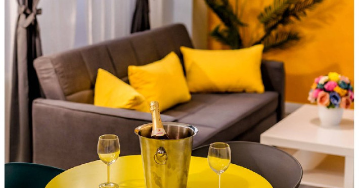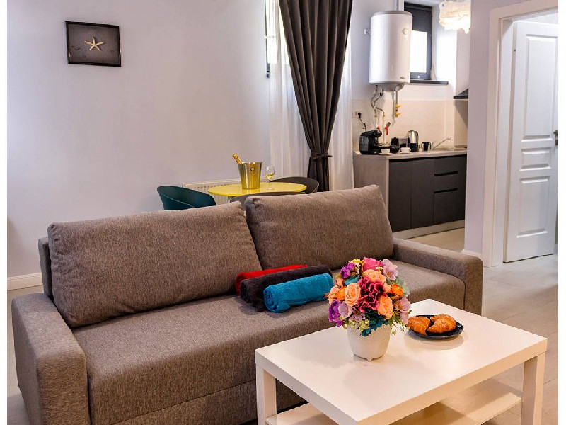 Garsoniera Economy nr. D501 Capacitate maxima : 2 persoane Suprafata : 30 mp Etaj : Demisol Terasa : Nu are Structura ap : Living : Canapea extensibila 2 persoane (160 x 200 cm) , aer conditionat , dulap haine , masa si scaune pt servit mancarea , TV smart 108 cm diagonala , masa de calcat , fier de calcat , uscator de rufe Bucatarie : plita , hota , frigider , espressor , sandwich maker , prajitor de paine , fierbator de apa , masina de spalat rufe Baie : dus , wc , lavoar , oglinda baie ,