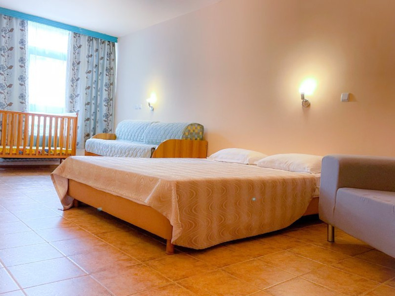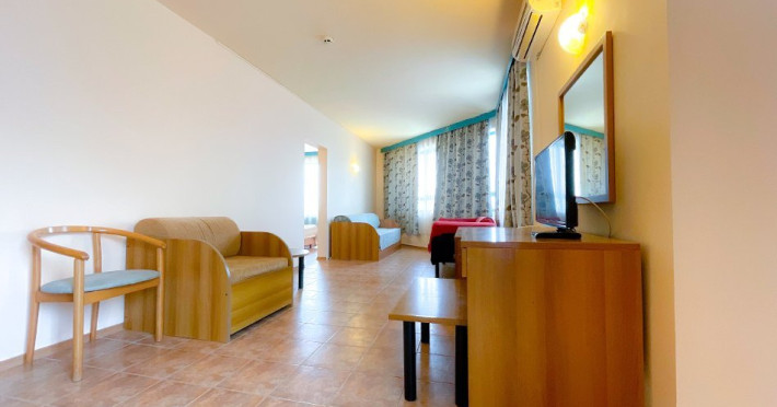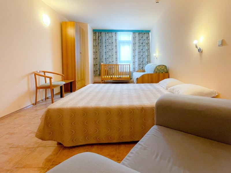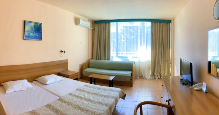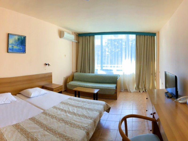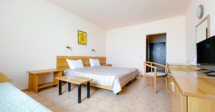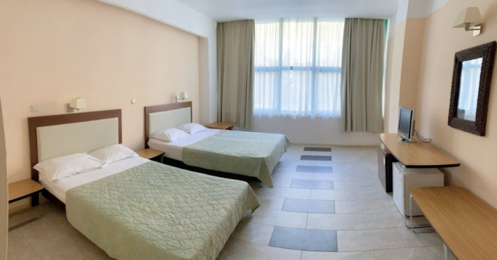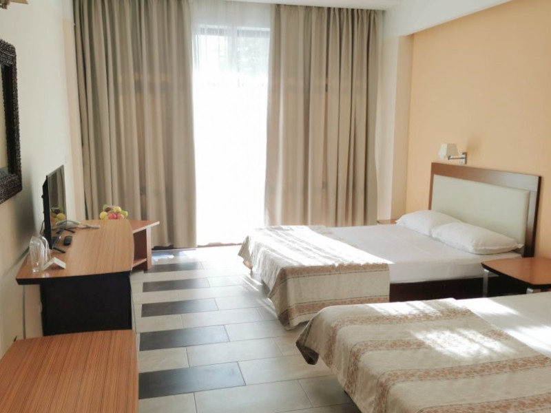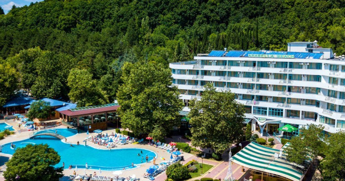 Hotel Arabella Beach este situat pe malul marii, in partea de nord a statiunii Albena, la 220 de metri de strada comerciala. Plaja: Plaja cu nisip si ape cristaline, in fata hotelului. Bucurati-va de cea mai frumoasa si curata plaja de pe coasta bulgara a Marii Negre, castigatoare a premiului Blue Flag. Fundul marii este plat, cu acces lin. Cazare: Hotel Arabella Beach este o cladire cu 6 etaje, care ofera cazare in 108 camere duble spatioase. Hotelul dispune de 2 lifturi si 6 etaje cu un foaier si o receptie la primul. DBL 2+1 / 2+2 STANDARD SEA SIDE VIEW: Aprox 25 mp. Camerele sunt fie cu vedere frontala, fie laterala la mare, mobilate confortabil cu paturi (100/195), minibar, televizor, telefon, aer conditionat, masuta de toaleta cu scaun, noptiere, putin masa cu doua taburete, un dulap cu seif incorporat, o canapea extensibila (90/195) si o baie cu cada sau dus, uscator de par, telefon si toaleta. Toate camerele dispun de balcoane spatioase, dotate cu o masa, scaune si un uscator pentru haine. Capacitatea maxima este de 2 adulti cu 2 copii. DBL 2+1 PARK VIEW WITH KITCHEN : Aprox 25 mp. Camerele sunt mobilate confortabil cu paturi de o persoana (100/195), minibar, televizor, telefon, aer conditionat, masuta de toaleta cu scaun, noptiere, masuta cu doua taburete, dulap cu o dulap incorporat. -in seif, o canapea extensibila (90/195) si o baie cu cada sau dus, uscator de par, telefon si toaleta. Aceste camere dispun de o chicineta - dotata cu chiuveta, loc fierbinte, ceainic pentru inima, ustensile. Toate camerele dispun de balcoane spatioase, dotate cu o masa, scaune si un uscator pentru haine. Capacitatea maxima este de 2 adulti si 1 copil. DBL 2+1 / 2+2 RENOVATED: Aceste camere sunt mai spatioase aprox30 mp. Camerele sunt mobilate confortabil cu doua paturi confortabile (140/200), minibar, televizor, telefon, aer conditionat, masuta de toaleta cu scaun, noptiere, masuta cu doua taburete, dulap cu un seif incorporat, o canapea extensibila (75/190) si o baie cu cada, uscator de par, telefon si toaleta. Toate camerele dispun de balcoane spatioase, dotate cu o masa, scaune si un uscator pentru haine. Capacitatea maxima este de 2 adulti cu 2 copii. DBL 2+1 / 2+2 RENOVATED SEA VIEW:: Aceste camere sunt mai spatioase, aprox30 de metri patrati. Camerele sunt mobilate confortabil cu doua paturi confortabile (140/200), minibar, televizor, telefon, aer conditionat, masuta de toaleta cu scaun, noptiere, masuta cu doua taburete, dulap cu un seif incorporat, o canapea extensibila (75/190) si o baie cu cada, uscator de par, telefon si toaleta. Toate camerele dispun de balcoane spatioase, dotate cu o masa, scaune si un uscator pentru haine. Capacitatea maxima este de 2 adulti cu 2 copii. *Pentru cazarea a 2 adulti cu 2 copii sau a 3 adulti cu 1 copil in camera dubla nu se accepta reclamatii cu privire la confortul si spatiul camerei! Patutul de copii este disponibil gratuit, la cerere prealabila Cazarea cu animale de companie de pana la 4 kilograme, cu certificat medical si pasaport contra este permisa plata suplimentara de 50 BGN pe zi Zonele publice sunt potrivite pentru persoanele cu dizabilitati Despre hotel: Restaurant Arabella Beach cu o terasa, care dezvaluie o priveliste minunata la mare, un lobby bar, un bar la piscina, o receptie 24/7, informatii, apeluri de trezire, apelarea unui taxi, servicii postale, o plaja biblioteca, spalatorie si calcat contra plata suplimentara, un seif contra plata suplimentara, o piscina in aer liber, volei pe plaja, fotbal pe plaja, tenis de plaja, tenis de masa, sah, table si multe alte jocuri distractive. Acces gratuit la internet Wi-Fi in zonele comune ale hotelului, cum ar fi receptia, lobby bar si langa piscina. Serviciu SPA in afara hotelului contra cost: Oaspetii hotelului se pot bucura de trei centre SPA exclusive care ofera o mare varietate de servicii: Centru spa in hotelul Dobrogea Centru Spa in Calimera Ralitsa Superior Centru de spa Elemente in Hotel & Spa Flaming Grand Centru spa Senses in Maritim Hotel Paradise Blue Albena ALL INCLUSIVE LA HOTEL ARABELLA BEACH **** :