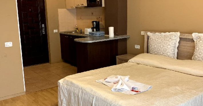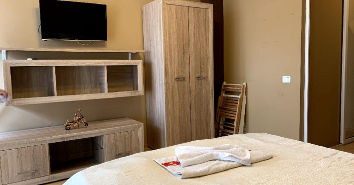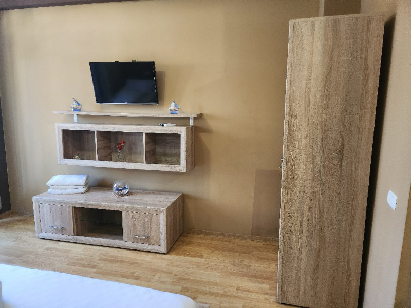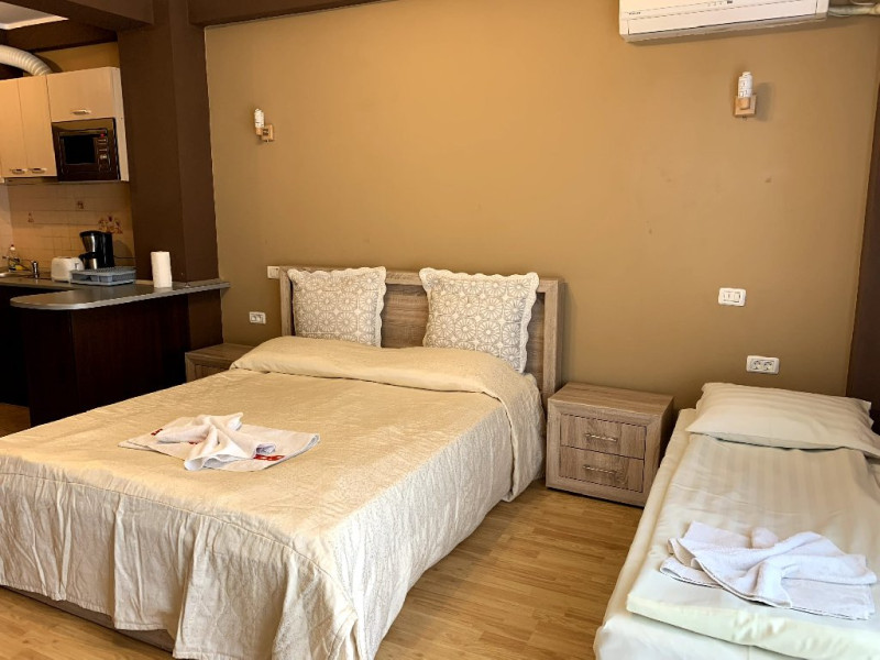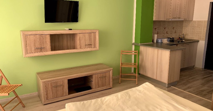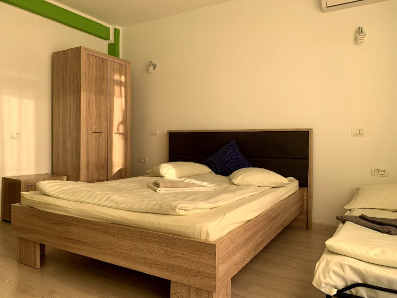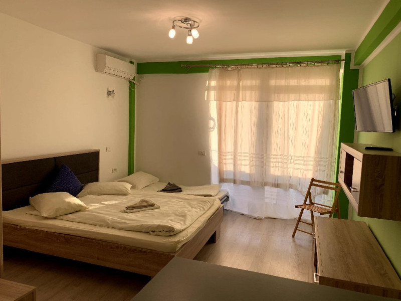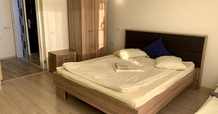 DESCRIERE CAMERE Toate apartamentele de la parter propuse pentru inchiriere au 2 camere standard, ele sunt compuse din dormitor cu pat matrimonial, living cu canapea extensibila confortabila, zona de servit masa si baie cu cabina dus. Fiecare dintre ele are o curte proprie, amenajata cu mobilier de terasa. Studiourile sunt compuse din kitchineta utilata, pat matrimonial si pat suplimentar , baie proprie si balcon cu mobilier adecvat. Apartamentul Extralarge Lifestyle este situat la etaj superior, compus din 2 camere foarte mari, zona de luat masa cu bucatarie, masina de spalat, baie proprie si balcoane cu terase amenajate cu mobilier specific. Apartamentele exclusive cu 3 camere sunt compuse din doua dormitoare cu paturi matrimoniale, living cu canapea extensibila si bucatarie, bai cu cabina de dus si deasemenea balcoane cu mobilier adecvat. Aceste apartamente au in dotare si masini de spalat., Dotarile standard: kitchineta utilata si frigider, Tv led, wi fi , aer conditionat, uscator de par.