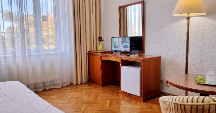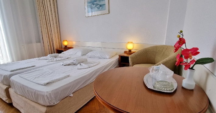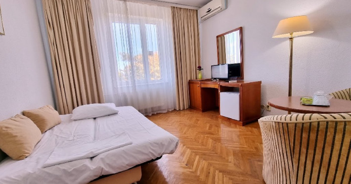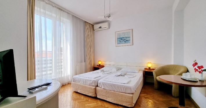 Camerele duble dispun de urmatoarele dotari: televizor, cablu tv, mini-bar, wi-fi, aer conditionat, bai cu dus sau cada. O parte din camere sunt dotate si cu balcon. Apartamentele cu balcon sunt formate din dormitor cu pat matrimonial/2 paturi twin si living cu o canapea extensibila pentru o persoana, cu usa intre ele, 1 baie, TV si AC intr-o singura camera. Apartamentele fara balcon sunt formate din dormitor cu pat matrimonial/2 paturi twin si living cu o canapea extensibila pentru o persoana, cu usa intre ele, 1 baie, TV si AC intr-o singura camera.