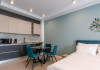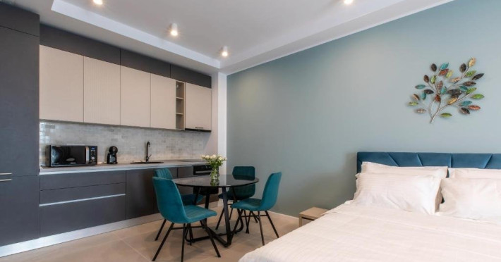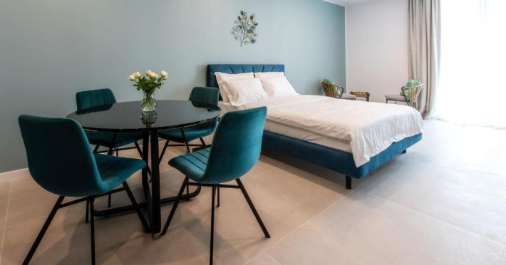 Cu o suprafata generoasa de 40 mp, studioul este gandit sa ofere un spatiu primitor si aerisit, perfect pentru cupluri, familii cu copii sau grupuri mici de prieteni. Designul sau imbina armonios simplitatea moderna cu dotarile utile, pentru ca fiecare sedere sa fie una relaxanta si lipsita de griji.
