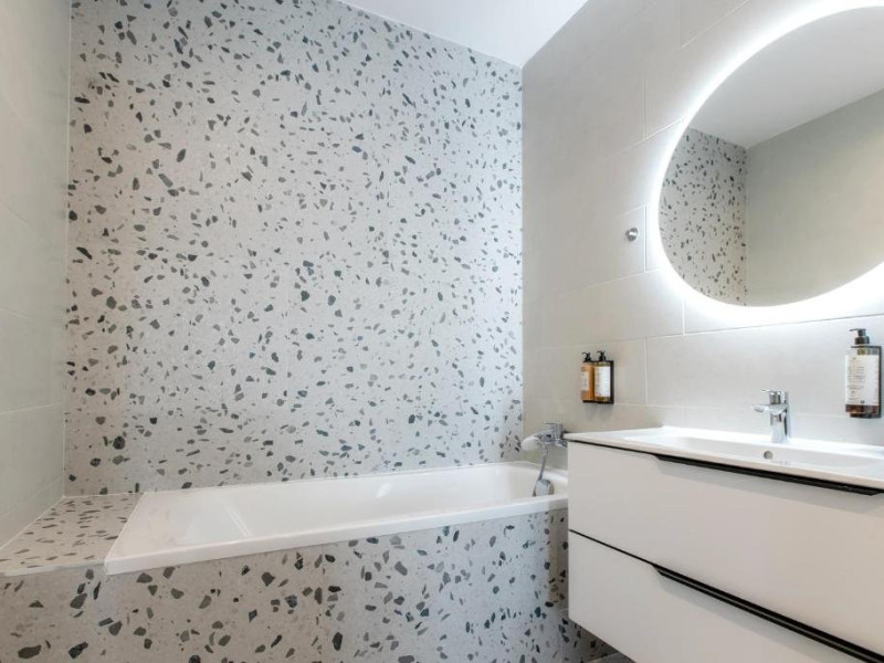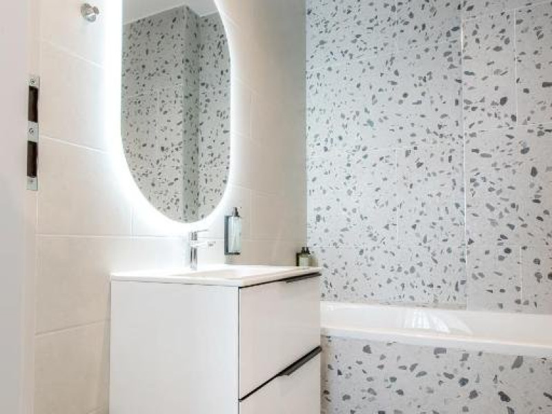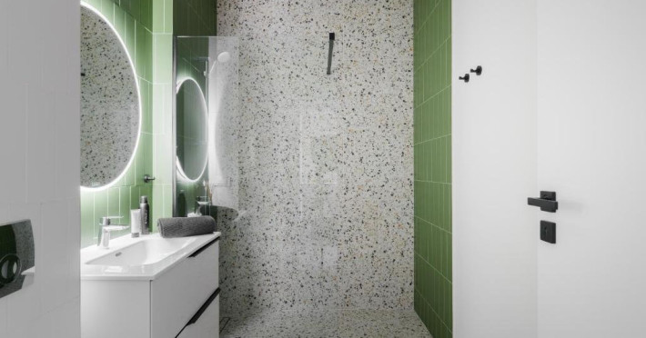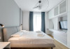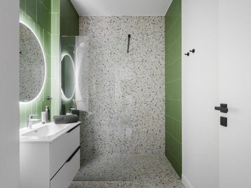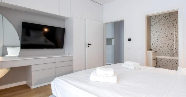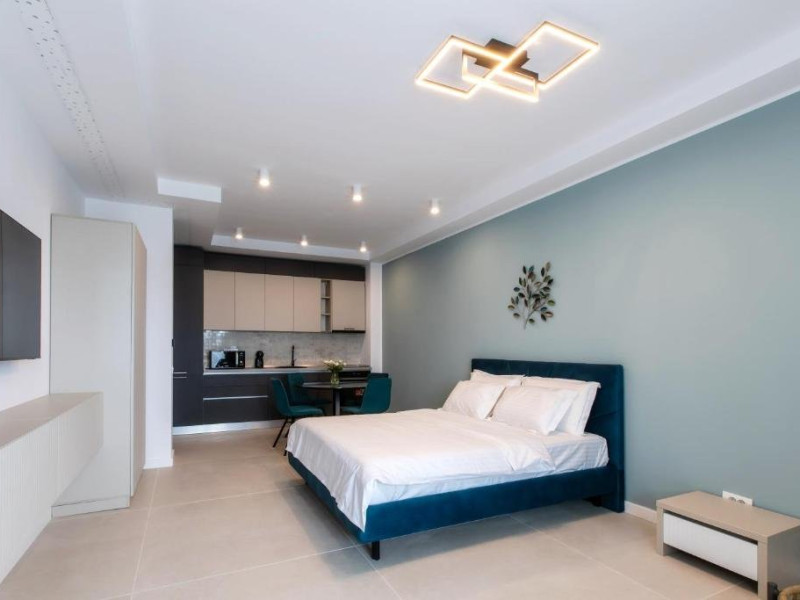 Zona de dormit este echipata cu un pat matrimonial confortabil si o canapea extensibila, oferind astfel pana la 3-4 locuri de dormit. Patul este pozitionat strategic in fata unui TV smart, ideal pentru seri linistite cu filme sau emisiuni preferate.