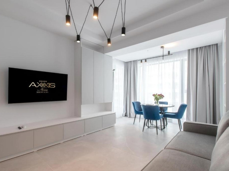 Studio spatios de 40 mp, in primul rand la mare, cu vedere panoramica la mare si lac. Situat intr-una dintre cele mai apreciate locatii de pe litoral, in complexul exclusivist Axxis Nova, Studio Sol ofera o experienta de cazare completa, fiind ideal pentru cei care isi doresc confort, functionalitate si o pozitionare exceptionala.