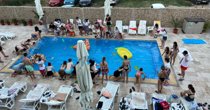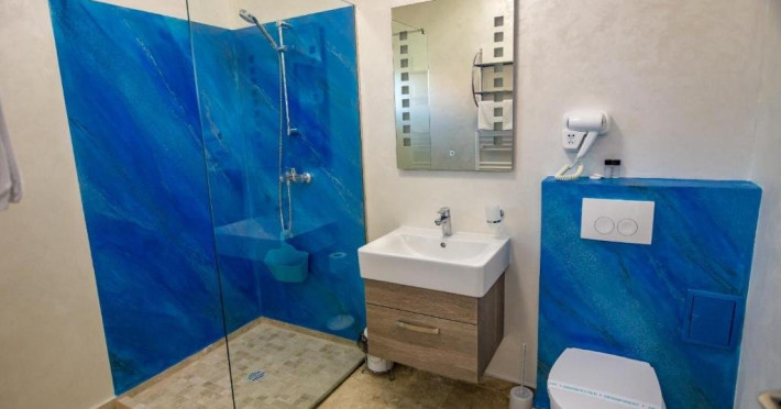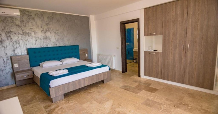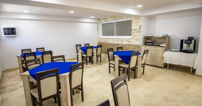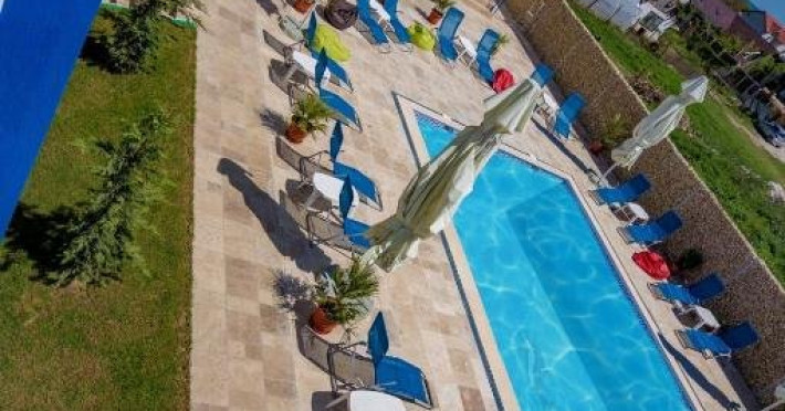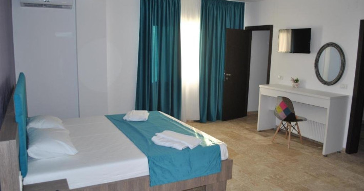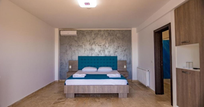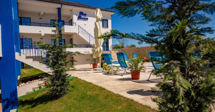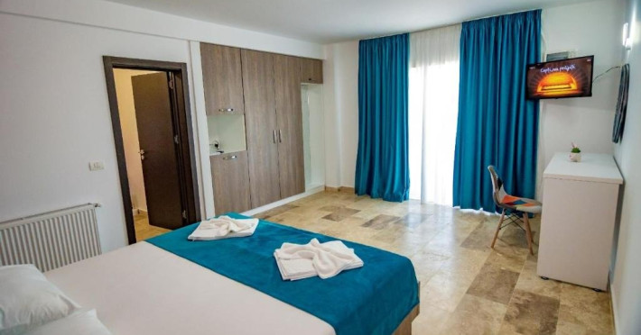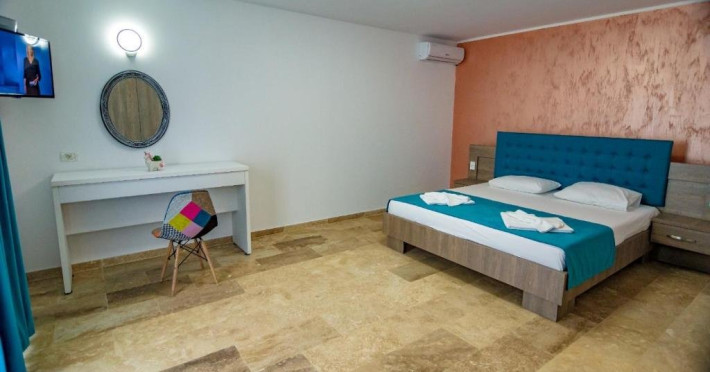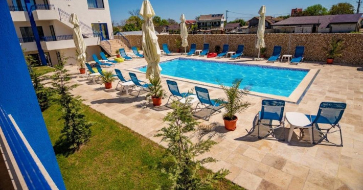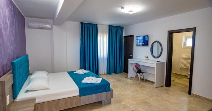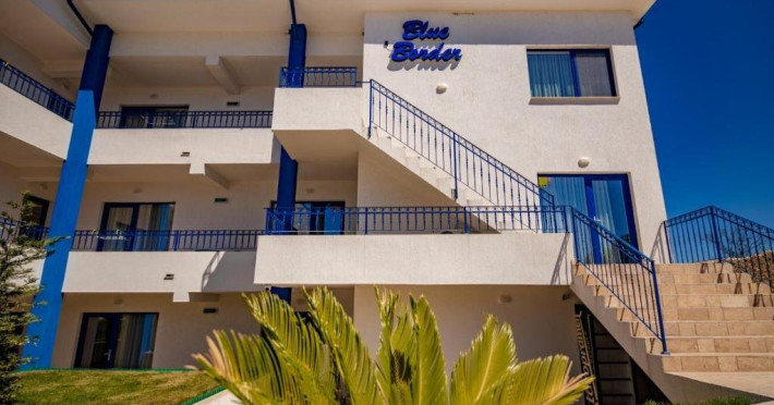 PENSIUNEA BLUE BORDER a fost deschisa in anul 2020 si se afla la aproximativ 300 de metri de plaja din Vama Veche, una dintre cele mai populare destinatii de pe litoralul din Romania. DOTARI SI SERVICII: Pensiunea Blue Border dispune de 24 camere pentru cazare, un restaurant cu vedere spre mare unde se serveste micul dejun, precum si o piscina cu apa sarata si incalzita. SERVICII MASA: Restaurant propriu cu vedere spre mare - unde se poate servii micul dejun. DOTARI CAMERE: Camera dubla este echipata cu grup sanitar propriu cu dus, u minibar, televizor LCD si internet wireless. Dispune de un pat matrimonial confortabil, fiind amenajata cu mobilier elegant si un design modern, care ofera o atmosfera relaxanta, ideala pentru odihna. Camera tripla este dotata cu grup sanitar propriu cu dus, minibar, televizor LCD si internet wireless. Include un pat matrimonial si o canapea extensibila pentru o persoana, fiind potrivita atat pentru cupluri, cat si pentru familii. Designul este armonios, iar amenajarea asigura confort si relaxare pe toata durata sejurului. Accesul in camere se face din exterior pe coridoare in aer liber pentru a optimiza fluxul de circulatie.