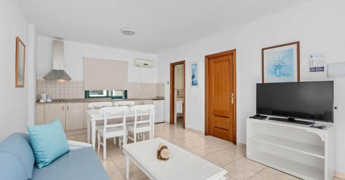 Fiecare apartament cu aer condiționat are o zonă de lounge cu canapea și televizor, o baie privată și o chicinetă cu cuptor cu microunde și plită. Există, de asemenea, o terasă privată sau un balcon cu vedere la complex sau la insulă.