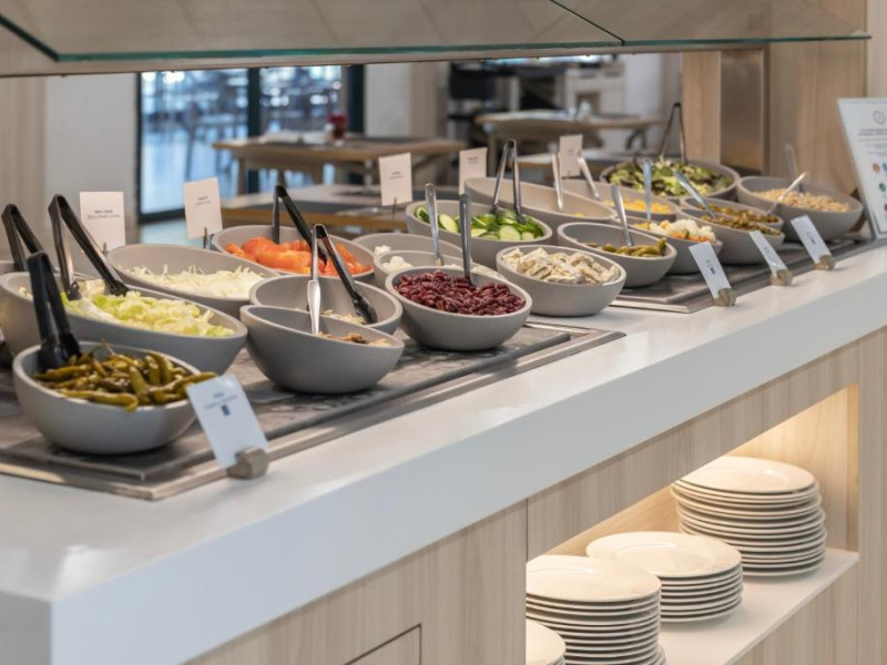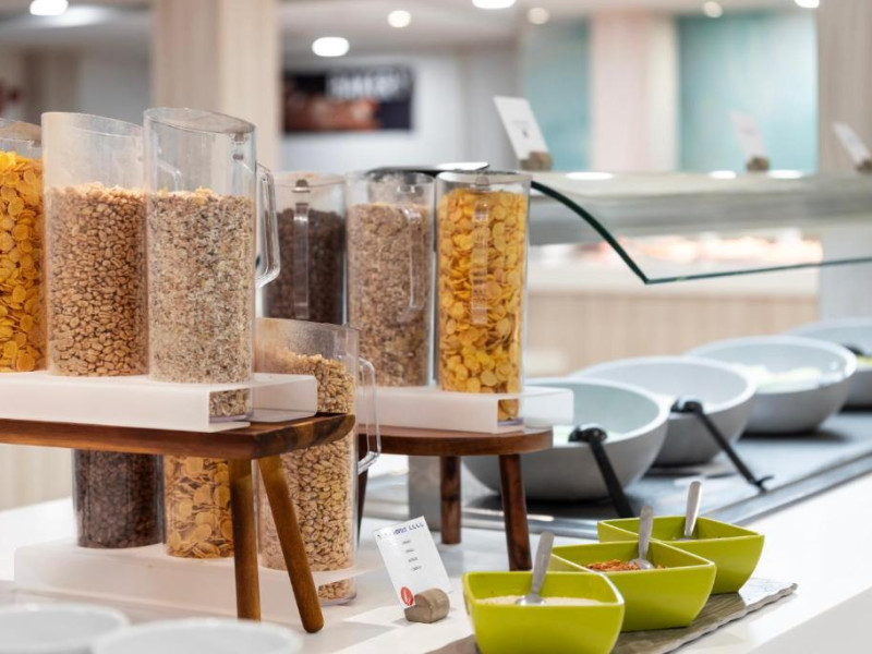 Puteți lua micul dejun, pranzul și cina la restaurantul tip bufet al Aloe Club. Există, de asemenea, un bar la piscină care servește băuturi și gustări. Alte facilități includ o sală de sport și facilități de tenis de masă.
