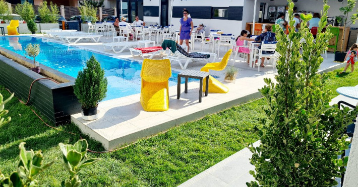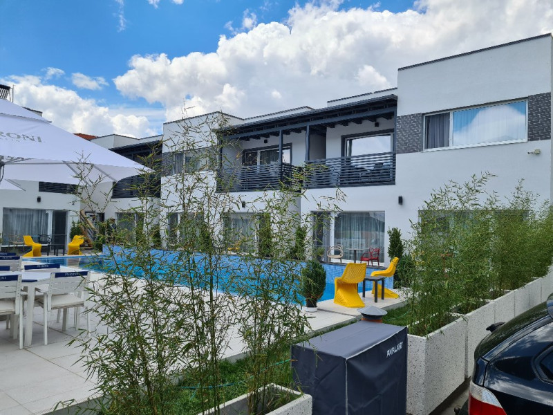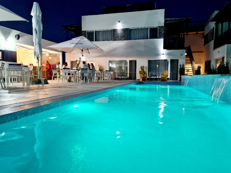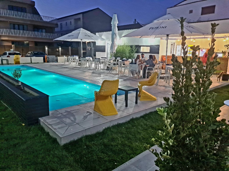 Terasa personalizata pentru fiecare camera / apartament NEW - piscina incalzita, spectaculoasa (ifinity pool). Mentionam ca, in anumite perioade (posibil mai sau septembrie), cu temperaturi repetate sub 16 grade noaptea, piscina nu poate fi incalzita. - sezlonguri, umbrele la piscina - gratuit, in limita locurilor disponibile - terasa moderna, acoperita/descoperita, ambient placut - preparate culinare atent alese si gatite cu dragoste - parcare gratuita la incinta - in functie de disponibilitate - la dispozitia turistilor: jocuri de rummy, table, sah, carti