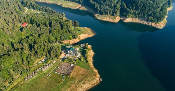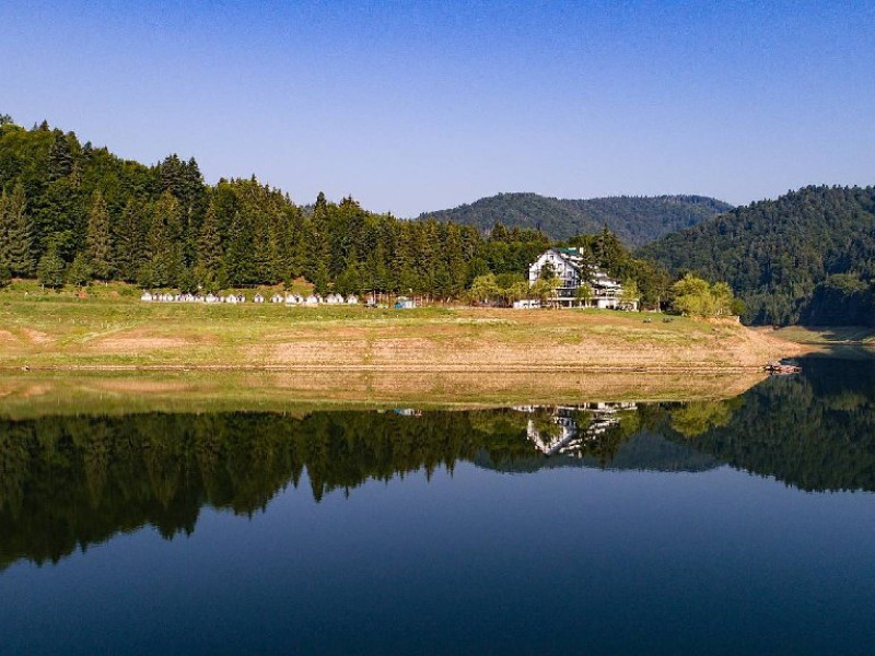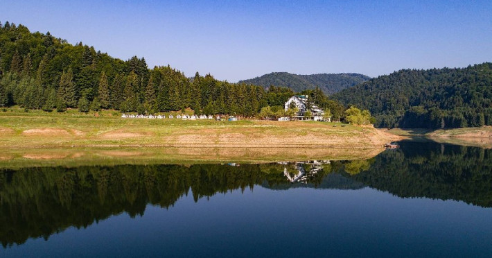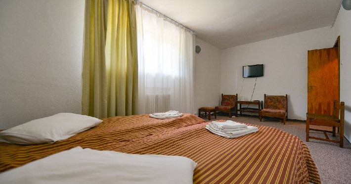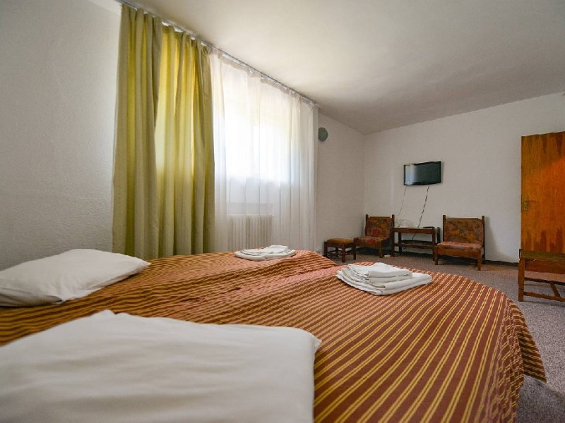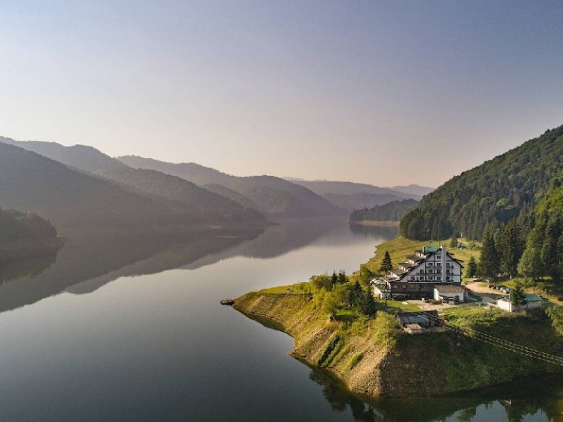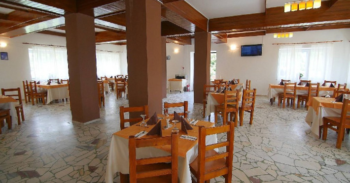 INFORMATII GENERALE Cabana Cumpana este situata pe malul stang al Lacului Vidraru, in comuna Arefu din judetul Arges la o altitudine de 860 m, cu o larga perspectiva asupra lacului Vidraru si a muntilor Fagaras. DESCRIERE UNITATE DE CAZARE Cabana Cumpana 2* a fost renovata la inceputul anului 2016 si redeschisa turistilor incepand cu luna mai 2016. FACILITATI UNITATE Hotelul dispune de parcare, restaurant, internet wireless in lobby si restaurant, loc de joaca pentru copii in exterior, teren de fotbal. DESCRIERE CAMERE Camerele duble dispun de doua paturi twin. Toate camerele ofera grup sanitar propriu, televiziune prin satelit, incalzire. LOCALIZARE Cabana Cumpana este situata pe malul stang al Lacului Vidraru, in comuna Arefu din judetul Arges la o altitudine de 860 m, cu o larga perspectiva asupra lacului Vidraru si a muntilor Fagaras. ATRACTII TURISTICE Transfagarasanul, Casa memoriala a compozitorului George Stephanescu, Manastirea Curtea de Arges, Biserica Domneasca (sec. XIV-XV), Complexul Muzeal Biserica Domneasca, Biserica Olari (sec. XVII), Cetatea Poienari (sec XV.), Barajul Vidraru, Monumentul Electricitatii. POLITICI Nu sunt permise animalele de companie. SERVICII DE MASA Hotelul dispune de restaurant (capacitate 80 locuri) si terasa (capacitate 40 locuri). FACILITATI COPII Loc de joaca exterior, teren de fotbal. FACILITATI EVENIMENTE Cabana ofera multiple posibilitati pentru petrecerea timpului liber si pentru activitatile de team-building si anume: - plimbari cu vaporasul pe Lacul Vidraru - posibilitati pentru cantonamente si antrenamente loturi de sportivi - team-building si tabere tematice pentru elevi si studenti - seri traditionale cu foc de tabara - teren de fotbal
