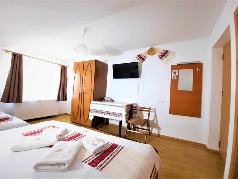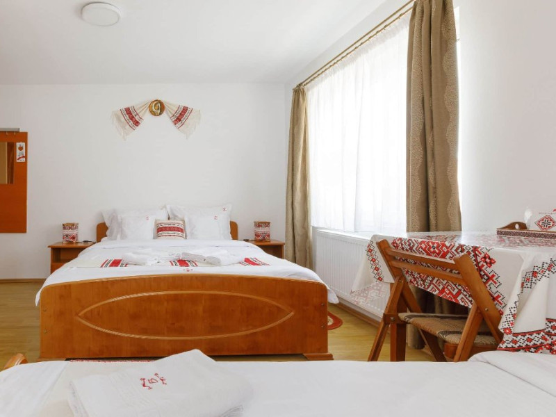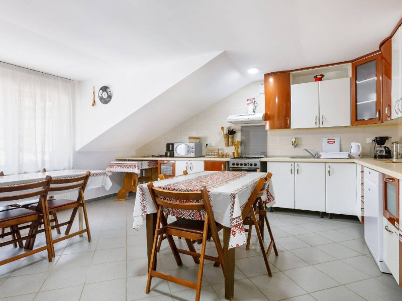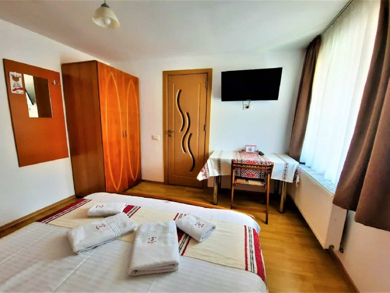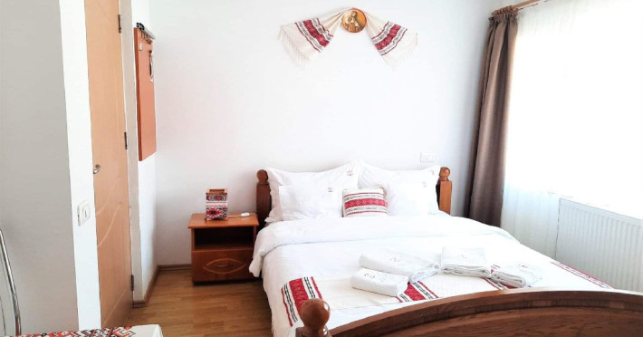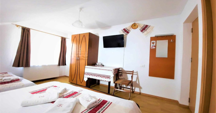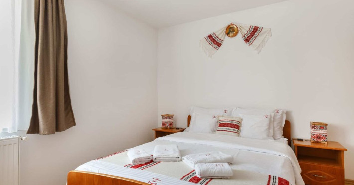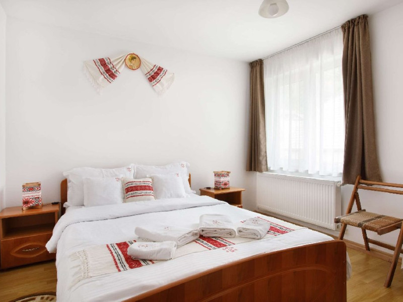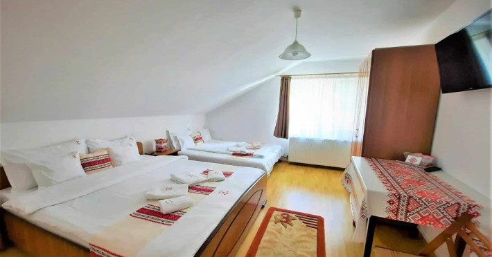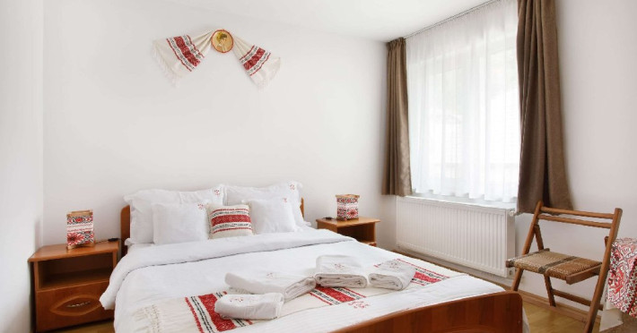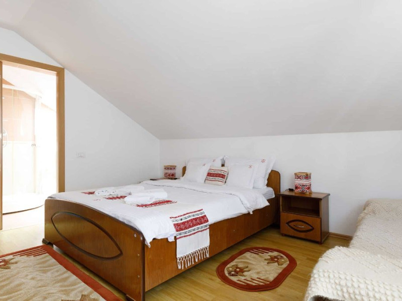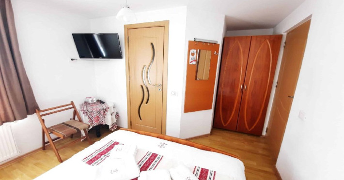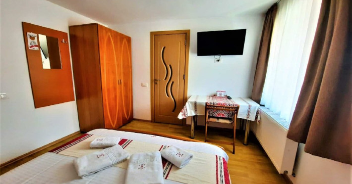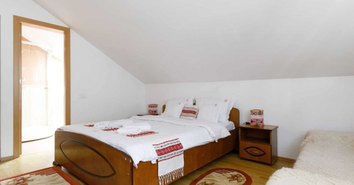 INFORMATII GENERALE Casa Dacica se afla in Rasnov la 5 minute de Dino Parc si Pestera Valea Cetatii. DESCRIERE UNITATE DE CAZARE Intr-un tinut in care vestigii ale istoriei medievale se impletesc cu frumusetile naturii, Casa Dacica va intampina cu confort si ospitalitate intr-o casa recent renovata, la poalele Cetatii Rasnov. FACILITATI UNITATE Locatia dispune de o bucatarie complet utilata de 23 mp, in care modernul cu traditionalul se imbina armonios, un living mic cu semineu situat la etaj, o baie de serviciu, incalzire cu centrala proprie pe gaz, internet Wi-Fi, parcare. DESCRIERE CAMERE Camerele duble dispun de un pat matrimonial 140 x 200 cm iar una din camere ofera si balcon. Camera tripla dispune de un pat matrimonial 160 x 200 cm si un pat single 100 x 200 cm. Camera family este mansardata si dispune de un pat matrimonial 160 x 200 cm si o canapea extensibila 160 x 200 cm. Toate camerele sunt dotate cu TV si au bai proprii cu cabina de dus, uscator de par, articole de baie. LOCALIZARE Casa Dacica se afla in Rasnov la 5 minute de Dino Parc si Pestera Valea Cetatii. ATRACTII TURISTICE Cetatea Rasnov, Piata Unirii, Biserica Sfantul Nicolae. In apropiere se afla si Castelul Bran sau Castelul lui Dracula. POLITICI Nu se accepta animale de companie. SERVICII DE MASA Turistii au la dispozitiei bucataria comuna complet utilata. FACILITATI COPII Copiii mai mari de 5 ani se pot caza in camera tripla sau family. FACILITATI EVENIMENTE Locatia nu dispune de salon pentru evenimente.