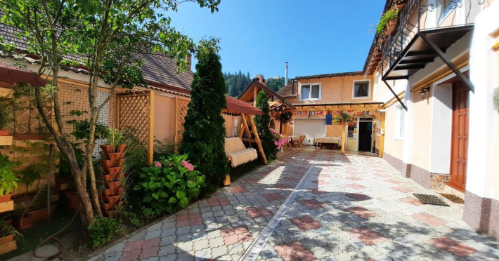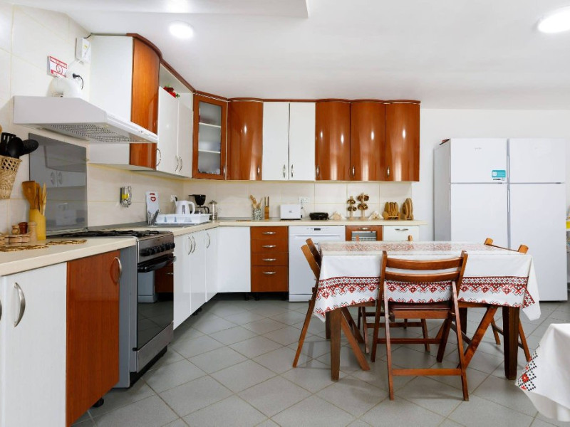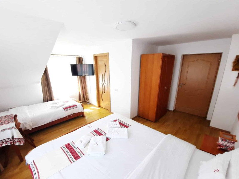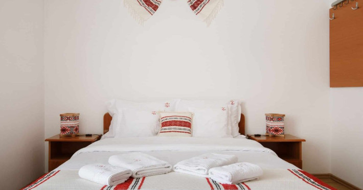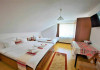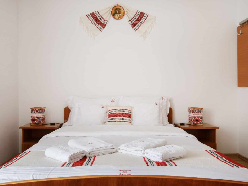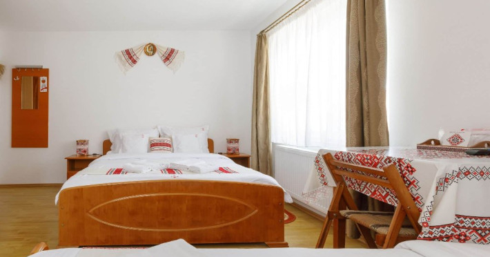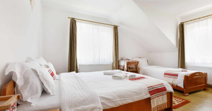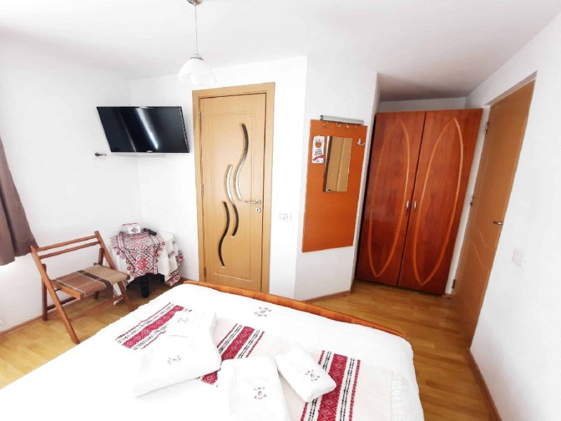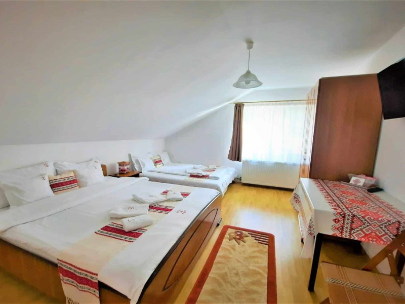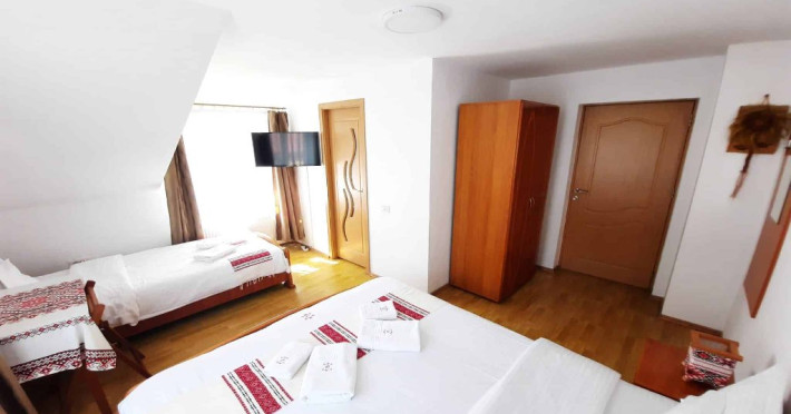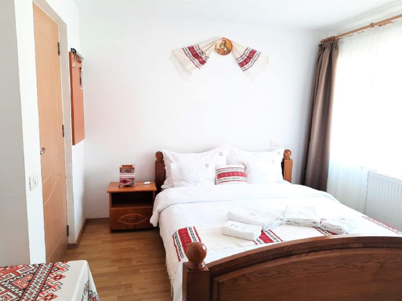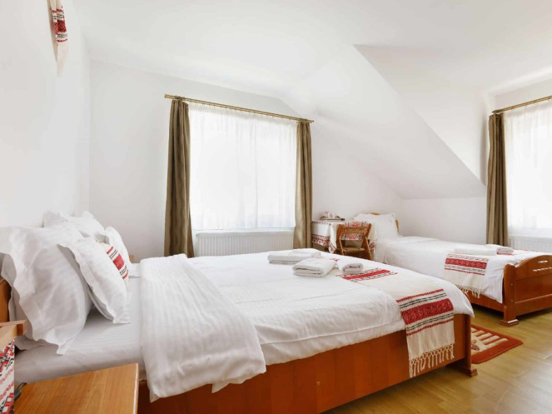 INFORMATII GENERALE Casa Dacica se afla in Rasnov la 5 minute de Dino Parc si Pestera Valea Cetatii. DESCRIERE UNITATE DE CAZARE Intr-un tinut in care vestigii ale istoriei medievale se impletesc cu frumusetile naturii, Casa Dacica va intampina cu confort si ospitalitate intr-o casa recent renovata, la poalele Cetatii Rasnov. FACILITATI UNITATE Locatia dispune de o bucatarie complet utilata de 23 mp, in care modernul cu traditionalul se imbina armonios, un living mic cu semineu situat la etaj, o baie de serviciu, incalzire cu centrala proprie pe gaz, internet Wi-Fi, parcare. DESCRIERE CAMERE Camerele duble dispun de un pat matrimonial 140 x 200 cm iar una din camere ofera si balcon. Camera tripla dispune de un pat matrimonial 160 x 200 cm si un pat single 100 x 200 cm. Camera family este mansardata si dispune de un pat matrimonial 160 x 200 cm si o canapea extensibila 160 x 200 cm. Toate camerele sunt dotate cu TV si au bai proprii cu cabina de dus, uscator de par, articole de baie. LOCALIZARE Casa Dacica se afla in Rasnov la 5 minute de Dino Parc si Pestera Valea Cetatii. ATRACTII TURISTICE Cetatea Rasnov, Piata Unirii, Biserica Sfantul Nicolae. In apropiere se afla si Castelul Bran sau Castelul lui Dracula. POLITICI Nu se accepta animale de companie. SERVICII DE MASA Turistii au la dispozitiei bucataria comuna complet utilata. FACILITATI COPII Copiii mai mari de 5 ani se pot caza in camera tripla sau family. FACILITATI EVENIMENTE Locatia nu dispune de salon pentru evenimente.