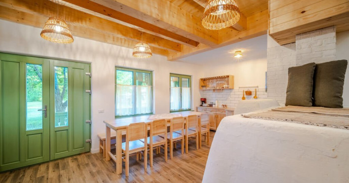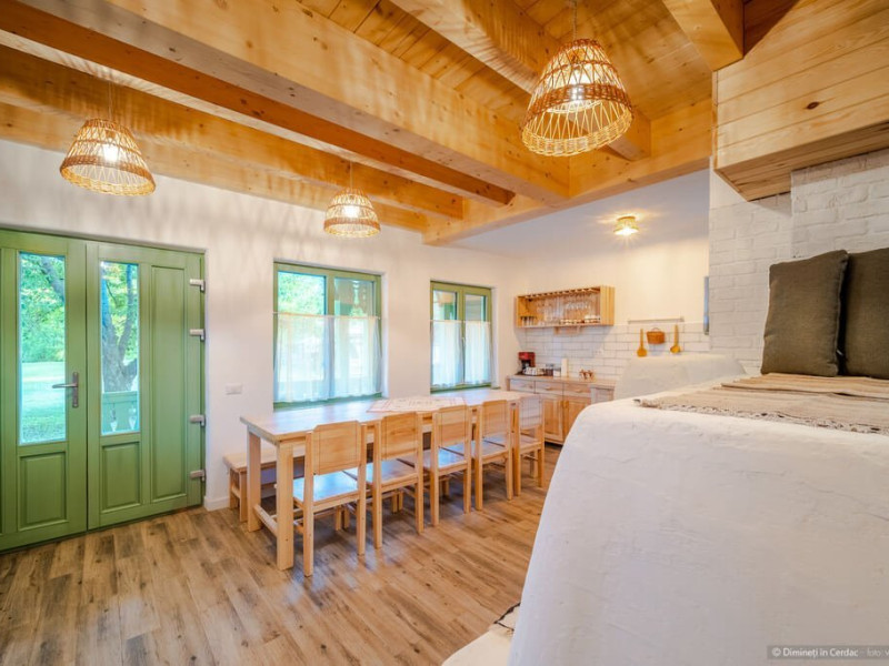 DESCRIERE UNITATE DE CAZARE Casa Dimineti in Cerdac si-a deschis portile la inceputul anului 2022 si imbina autenticul romanesc, farmecul povestilor din copilaria petrecuta la bunici si o simbolistica aparte care se regasesc in fiecare coltisor din aceasta locatie gandita sa poata primi mici grupuri de prieteni dar si familii cu copii. Casa lutuita cu grija de alta data, este situata in Piatra Neamt, are aspect traditional si dotari moderne discrete. Poate gazdui confortabil pana la 10 oaspeti, 8 adulti si 2 copii, in 7 paturi (3 duble, 2 paturi de copii si 2 de o persoana), amplasate in 4 dormitoare.