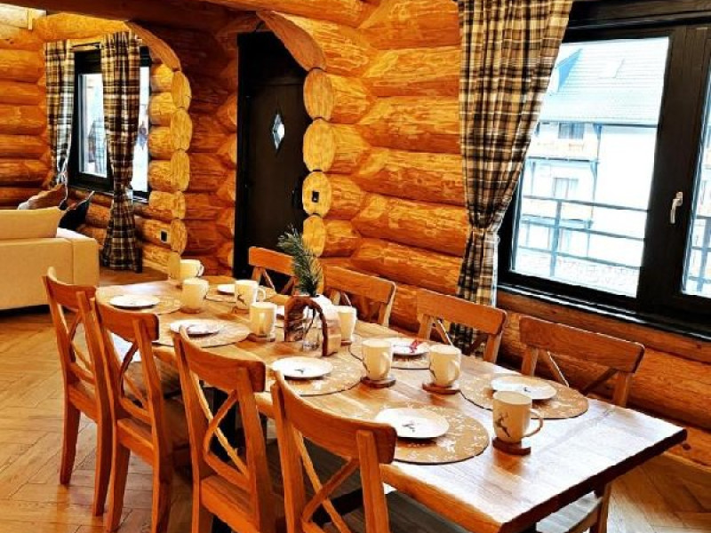 INFORMATII GENERALE Chalet Rozmarin se afla in statiunea Predeal, la iesirea din orasul Predeal spre Brasov, in imeditata vecinatate a hotelului Rozmarin. DESCRIERE UNITATE DE CAZARE Cele 3 cabane sunt realizate din busteni si inconjurate de un decor natural splendid. Intime si cu priveliste catre Muntii Bucegi, frumoasele cabane sunt ideale pentru grupuri de prieteni si familii. Primesti mai mult decat cazare in Predeal, te vei bucura de o experienta relaxanta si intima. FACILITATI UNITATE Fiecare cabana dispune de 4 dormitoare cu baie proprie, living cu canapea, chicineta si o baie de serviciu. Dotarile moderne si atmosfera cozy iti vor face vacanta mai frumoasa. LOCALIZARE Chalet Rozmarin se afla in statiunea Predeal, la iesirea din orasul Predeal spre Brasov, in imeditata vecinatate a hotelului Rozmarin. ATRACTII TURISTICE Ascensiuni montane (Vf. Piatra Mare 1.843 m), Masivul Postavaru, Muntii Bucegi cu Vf. Omu (2.505 m), cascada Tamina, Pestera de Gheata; obiective istorice din Brasov, Sinaia, Rasnov, Castelul Bran, Castelul Pelis si Pelisor, Castelul Cantacuzino, Muzeul Trenurilor (Sinaia). SERVICII DE MASA Mesele se servesc in restaurantul hotelului Rozmarin, aflat la 50 m distanta de chalet. POLITICI Nu sunt permise animalele de companie. FACILITATI COPII Copiii se pot caza in orice cabana. FACILITATI EVENIMENTE Locatia nu dispune de sala de conferinte.