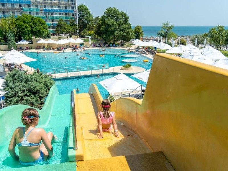 HOTELUL SEMIRAMIS este situat in partea de sud a statiunii Saturn, chiar pe faleza. Construit la doar 150 de metri de plaja, hotelul reprezinta o alegere ideala atat pentru cei care doresc sa se bucure de plaja si de beneficiile aerosolilor marini direct din camera, cat si pentru turistii interesati de vizitarea orasului Mangalia sau de efectuarea unor proceduri terapeutice in bazele de tratament din zona. Hotelul dispune de 188 de camere, distribuite pe 5 nivele.