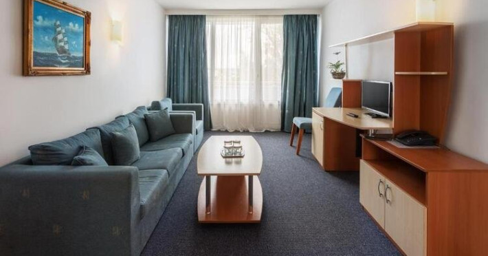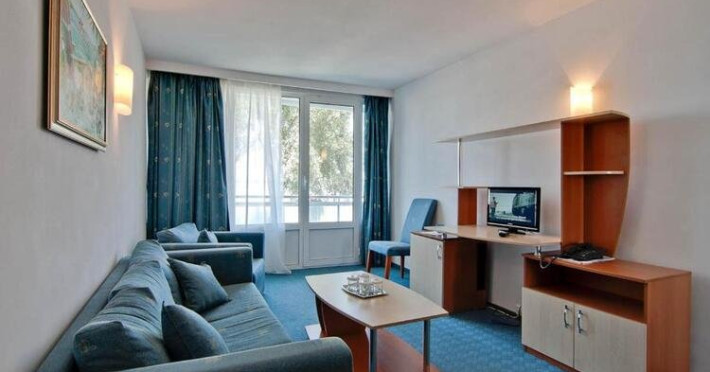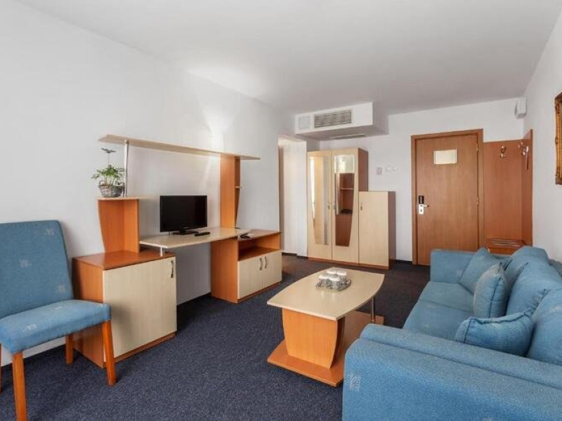 Dotari camere: aer conditionat, TV, minibar, baie cu dus la camere, baie cu cada in apartamente, balcon, uscator de par, telefon, seif.