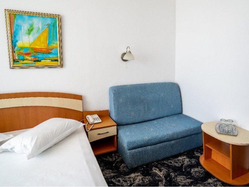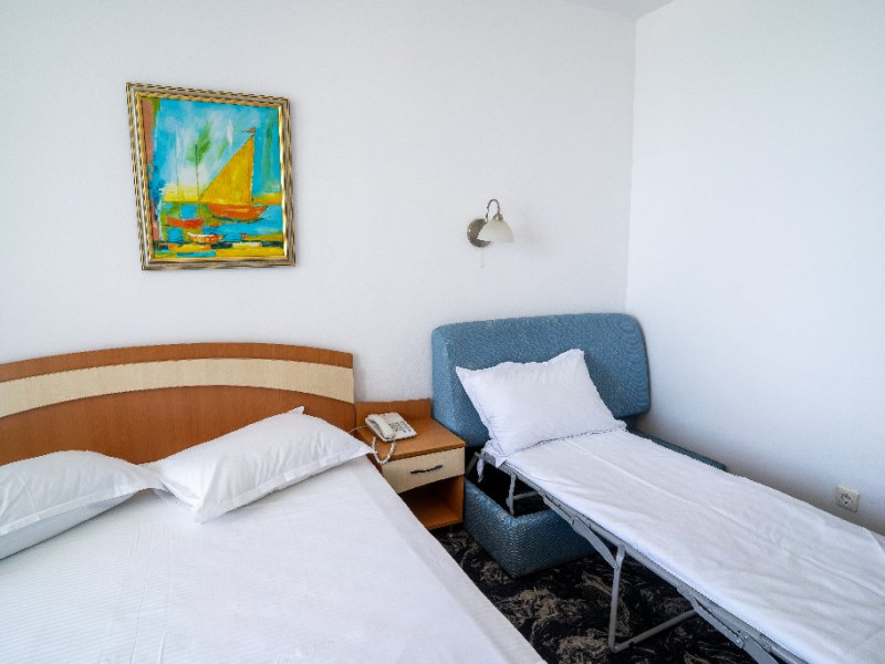 In camera dubla cu vedere frontala la mare se poate introduce un singur pat suplimentar.