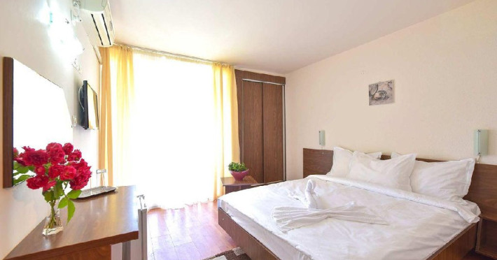 DESCRIERE CAMERE Dotari camere duble: aer conditionat, TV -LED, minibar, baie cu dus, balcon -cele de la parter sunt mai mici, internet -wireless gratuit, de mare viteza, tamplarie aluminiu cu geam termopan, pardoseala din parchet. Accesul in camere permis cu cartele magnetice. Numar total camere: 298