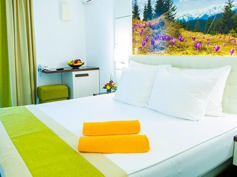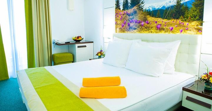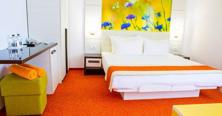 SERVICII MASA Servicii de masa all inclusive (in regim bufet, oferite la restaurant): - micul dejun se serveste zilnic intre orele 7:30 - 10:00 - pranzul se serveste zilnic intre orele 13:00 - 15:00; - gustarea se serveste zilnic intre orele 11:00 - 12:00; 16:30 - 17:30 - cina se serveste zilnic intre orele 19:00-21:00 - apa plata, apa minerala, cafea si bauturi racoritoare oferite la restaurant si pe terasa intre orele 7:30 - 22:00. - vinul casei si bere draft oferite la restaurant si pe terasa intre orele 11:00 - 22:00 - lichior, vermut, vodca, coniac, oferite la restaurant in timpul mesei de pranz (13:00 - 15.00) si cina (19:00 - 21:00); Bauturile incluse in pachet nu sunt imbuteliate, acestea se servesc in pahare de unica folosinta(plastic/carton). Serviciile din ziua sosirii incep cu pranzul (13:00 - 15:00), moment in care veti primi bratara care va ofera acces la facilitatile resortului mentionate in pachetul all inclusive. Alocarea camerelor se efectueaza incepand cu ora 16:00 si poate dura pana la ora 20:00. Check-out-ul se realizeaza cel tarziu la ora 11:00 si presupune predarea cardurilor de acces si a bratarilor. Dupa aceasta ora nu va mai fi permis accesul la facilitatile resortului. IMPORTANT: Serviciile din ziua sosirii incep cu pranzul (13:00 - 15:00), moment in care veti primi bratara care va ofera acces la facilitatile resortului mentionate in pachetul all inclusive. Alocarea camerelor se efectueaza incepand cu ora 16:00. Check-out-ul se realizeaza celtarziu la ora 11:00 si presupune predarea cardurilor de acces si a bratarilor. Dupa aceasta ora nu va mai fi permis accesul la facilitatile resortului. Programul de entertainment de pe terasa Restaurantului Mera se va desfasura zilnic intre orele 19:00 si 22:30. In incinta restaurantului, accesul este permis doar cu o tinuta decenta, fara obiecte si accesorii deplaja. Programul de functionare al barului a la carte din zona piscinei este10.00 - 23.00. Este interzisa parasirea restaurantului sau terasei cu alimentesi/sau bauturi, vesela, tacamuri, etc.
