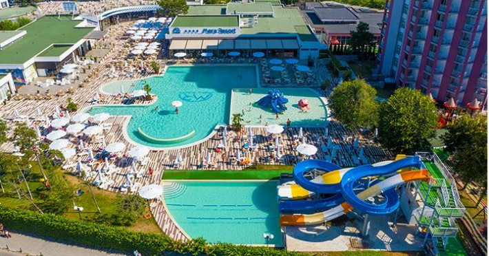 Servicii incluse (all inclusive): Piscine pentru adulti; Umbrele si sezlonguri la piscine in limita locurilor disponibile (alocarea sezlongurilor se face in ordinea sosirii la piscina); Parcare in limita locurilor disponibile; Parc de joaca pentru copii, mini Aquapark pentru copii; Piscina pentru copii incalzita; Piscina cu tobogane acvatice - 3 canale, Teatru de vara pentru copii; Club animatie copii; Jocuri si concursuri adulti si copii (piscine, terasa); Animatori; Muzica live; Program artistic; Tenis de masa, Rummy, Table, Sah, Biliard; umbrele si sezlonguri la plaja in limita locurilor disponibile (alocarea sezlongurilor se face in ordinea sosirii la plaja); prosoape plaja/piscina; Internet WIFI; Pat bebe tip tarc la cerere, in limita disponibilitatii; Beach Bar All inclusive.