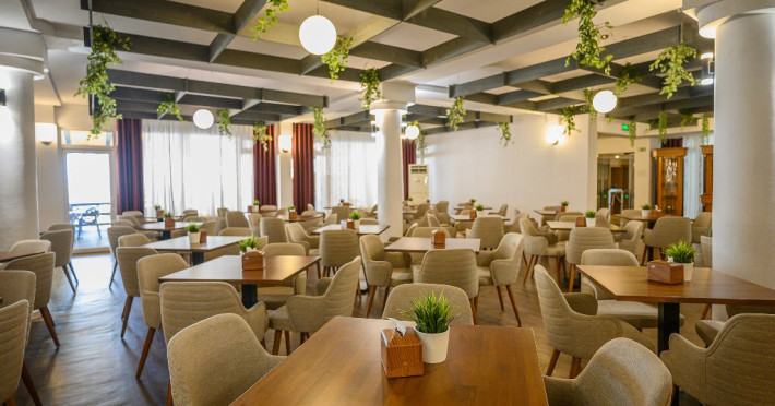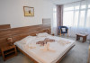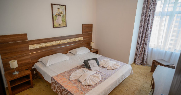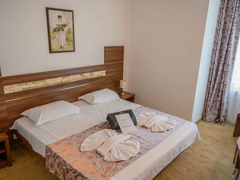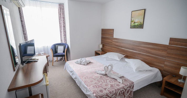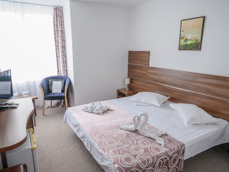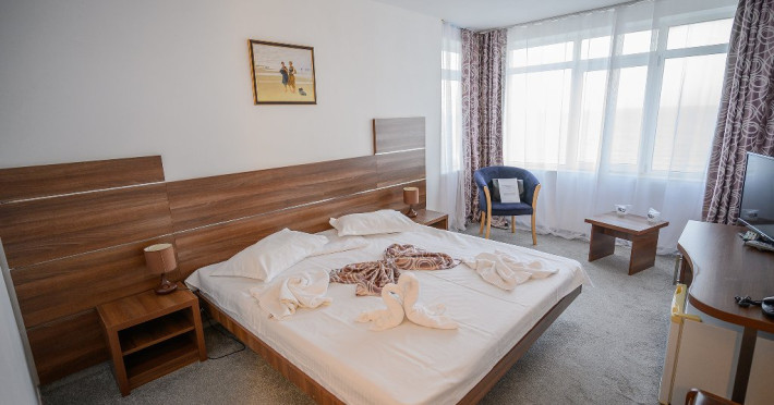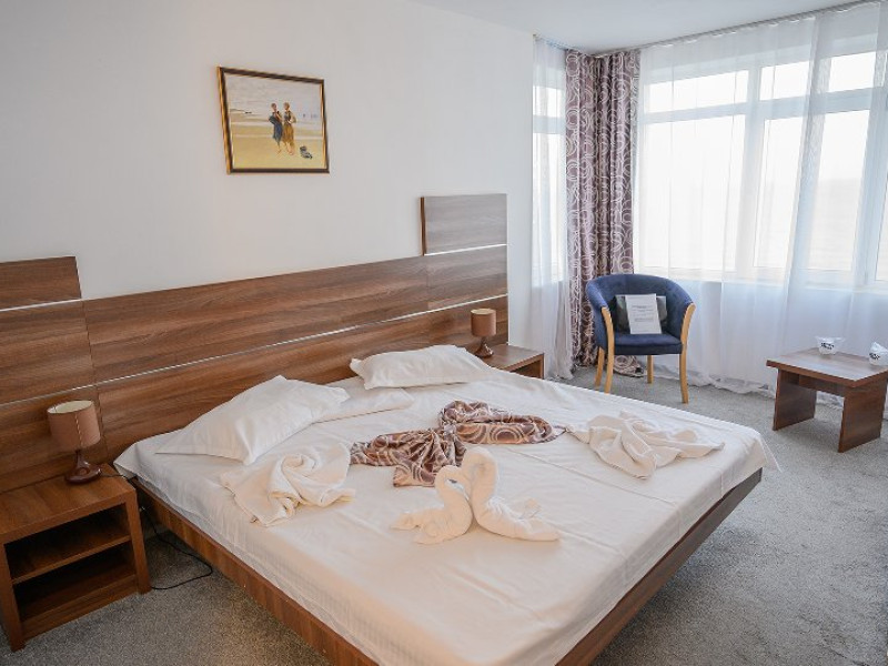DESCRIERE CAMERE Dotari camere: aer conditionat, TV, minibar, baie cu cada -in apartamente, baie cu dus -in camere, internet -wireless gratuit, uscator de par, halate de baie, telefon. Toate camerele sunt dotate cu sistem de acces pe baza de carduri magnetice. Camerele hotelului au fost modernizate in 2020-2021. Camerele duble cu pachet Superior din cadrul Hotelului Delfinul ofera vedere partiala catre Marea Neagra si sunt situate la etajele superioare ale hotelului. Camerele sunt FARA balcoane. Camere pentru persoane cu dizabilitati. Duble: 26 camere cu pat matrimonial si 192 camere cu doua paturi. Apartamente: apartamentul este compus din living cu canapea extensibila si dormitor cu pat matrimonial.