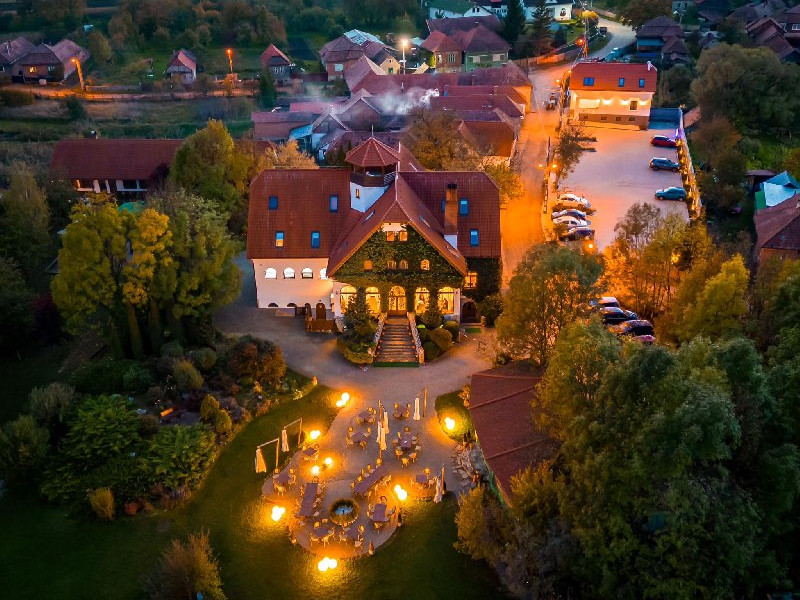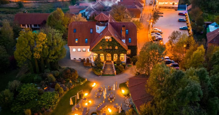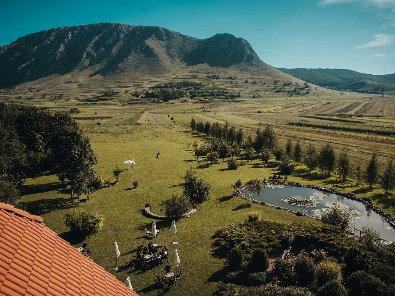 FACILITATI UNITATE: Restaurant, crama - restaurant, terasa, cibar, sauna, lac cu nuferi,loc de joaca pentru copii. DESCRIERE CAMERE: Camerele sunt dotate cu paturi twin sau matrimoniale, Wi-Fi, Tv, baie proprie cu uscator de par si cosmetice de baie.