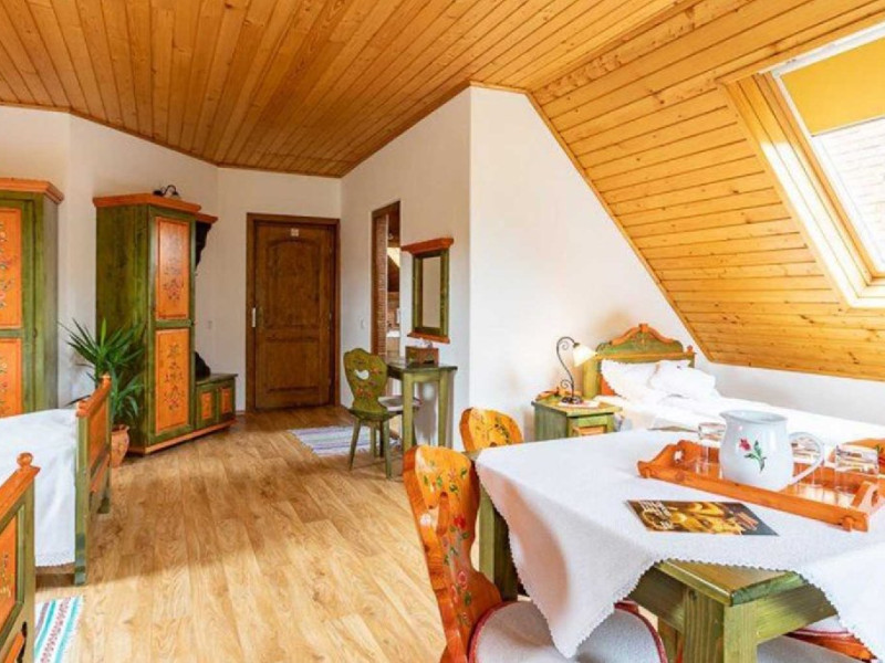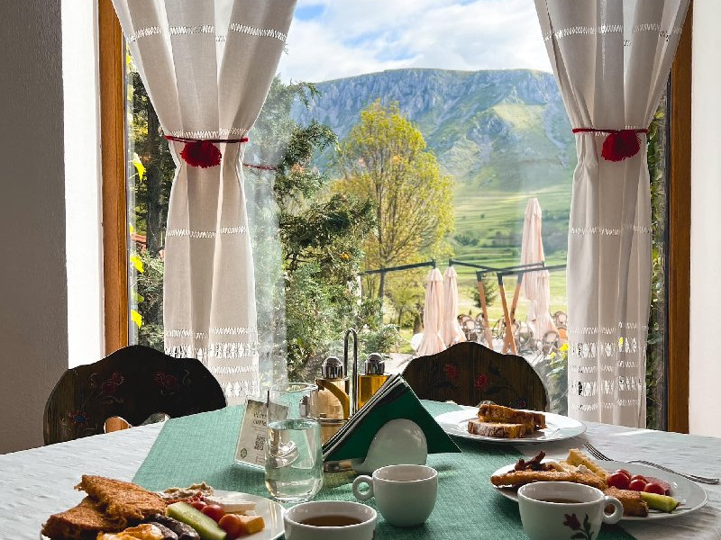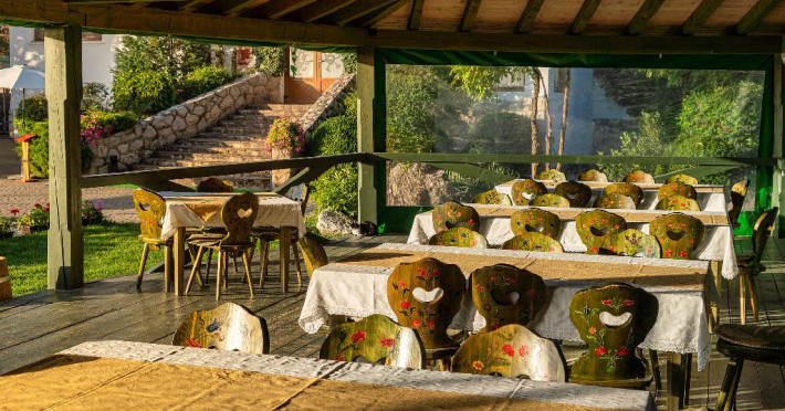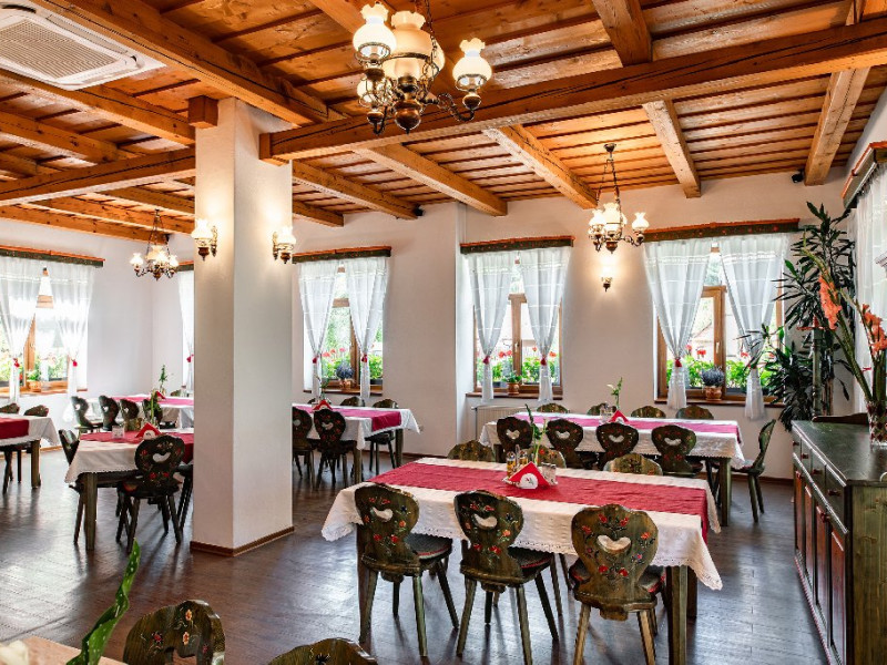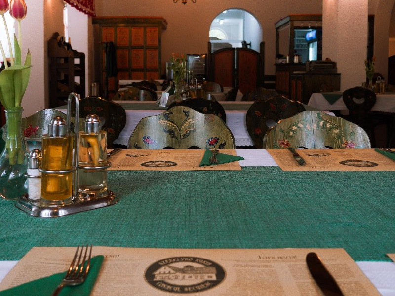 SERVICII DE MASA: Se ofera in restaurantul propriu, mic dejun bufet, pranz si cina a la carte. Restaurantul renumit in regiune este cu specific local, majoritatea produselor fiind locale, inclusiv painea servita aici este produsa la fata locului in cuptor cu lemne.