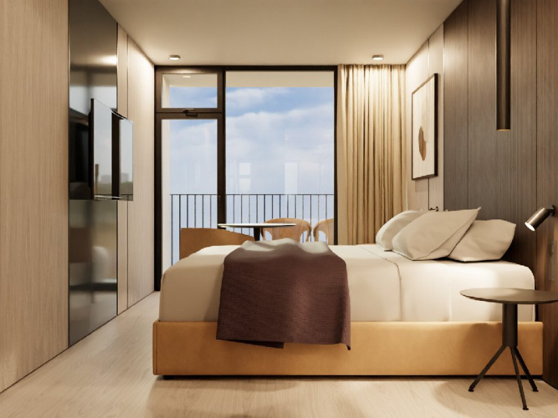 Camerele Duble cu balcon si canapea au suprafata de 19mp, sunt situate la etaj, dispun de balcon cu doua scaune si masuta, includ pat king (dimensiunea 180x200cm) si canapea exetensibila (dimensiune 110x190cm). Capacitate maxima: 2 adulti si 2 copii (un copil 0-17 ani si un copil 0-11 ani).