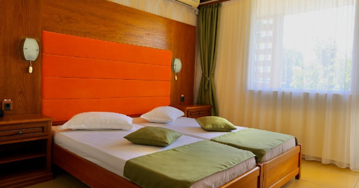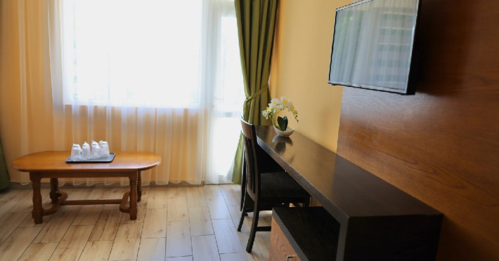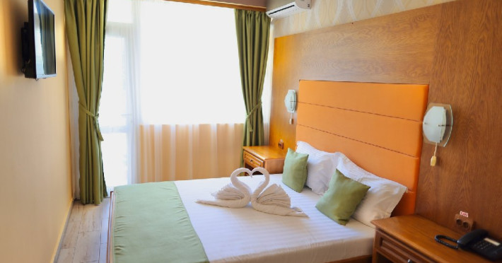 Camere: Camerele duble sunt renovate si au aer conditionat, baie proprie cu dus, balcon, pardoseala cu gresie, internet wi-fi, televizor LED, minibar, uscator de par si un set de articole de toalet, balcon. In camerele duble mici NU se accepta pat suplimentar.