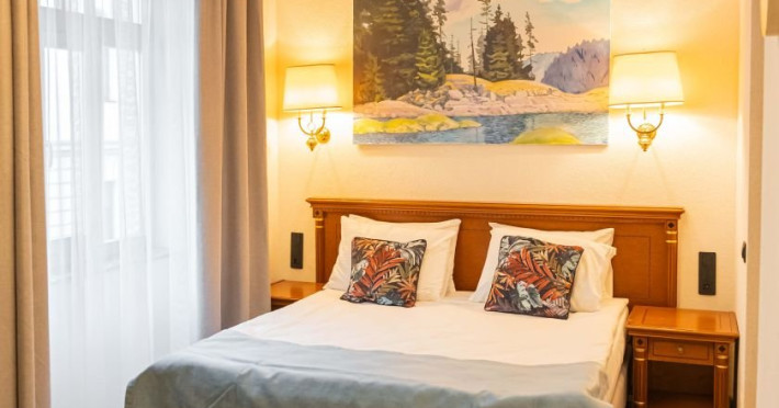 Camera Superior este destinata oaspetilor care apreciaza confortul, eleganta si atentia la detalii. Spatiu generos si functional: echipata cu un pat matrimonial king-size sau doua paturi twin, saltea premium si lenjerii de cea mai buna calitate pentru un somn odihnitor.