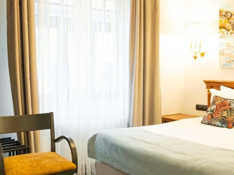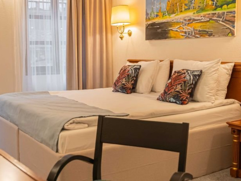 Camera Standard ofera o combinatie perfecta intre confort, functionalitate si un design modern, ideala pentru turistii care doresc sa descopere farmecul orasului. Dotata cu un pat dublu matrimonial 160x200 cm, camera este luminoasa, avand ferestre generoase care ofera o priveliste relaxanta asupra imprejurimilor.