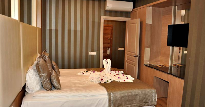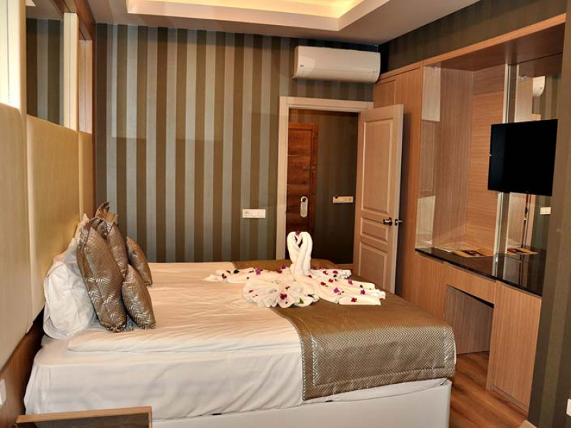Dotari camere: balcon, vedere la gradina, aer conditionat, baie privata, TV cu ecran plat, terasa, minibar.