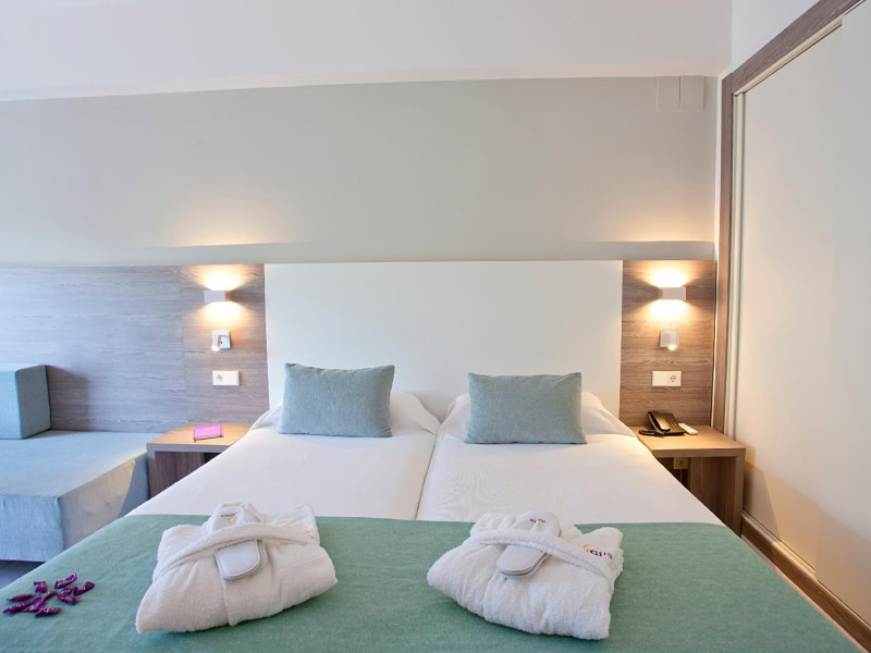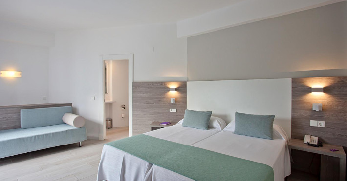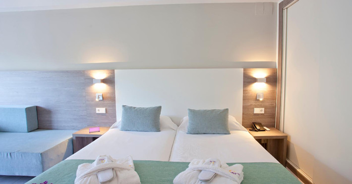 Enjoy a hotel near Palmanova beach and live unforgettable moments at the shores of the Mediterranean, with all the services within your reach and with a personalised customer service. The refurbished FERGUS Bermudas Hotel, with state-of-the-art facilities, stands out for being an accommodation in Majorca for families, couples and groups of friends looking for a customised space where to relax and make the most of their holidays. A refuge designed for our guests to enjoy their time to the maximum in a setting offering endless plans and possibilities. Sports for all tastes and ages, chill out sunsets, theme parks, activities for children, beaches and hidden coves of turquoise waters, trekking routes, golf, shopping, gastronomy, delicious cocktails, bar area... You will find everything you can imagine at our hotel in Palmanova and in its lively surroundings. Choose one of its double rooms or junior suites and discover a new way of enjoying your holidays in a hotel with proposals for all tastes: restaurant with outdoor terraces, swimming pool, solarium area with comfortable sunbeds, cocktail bar, miniclub for children, free Wi-Fi internet... Visit the FERGUS Bermudas and enjoy a stay at a 4-star hotel in Palmanova at the best price and with all type of attentions, details and services. Live the holidays of your dreams and discover a different and entertaining Majorca full of adventures. Everything backed up by the guaranty of FERGUS HOTELS..