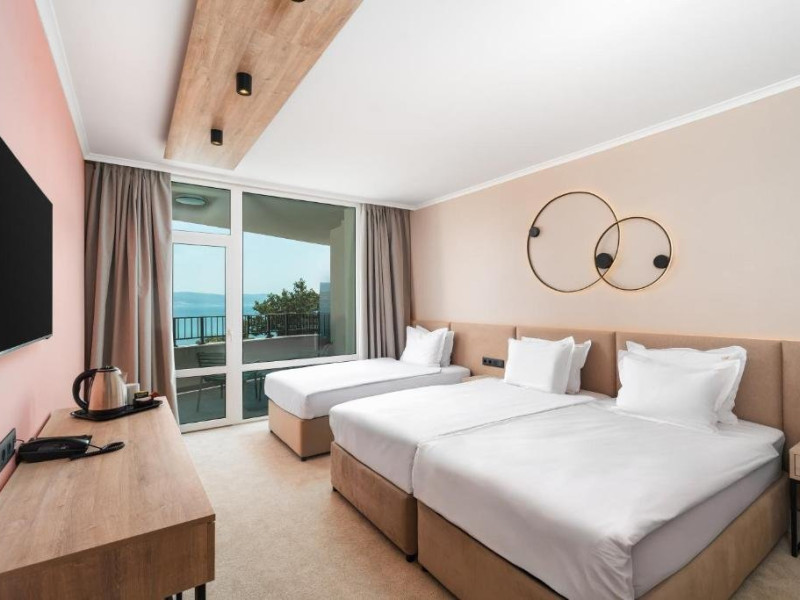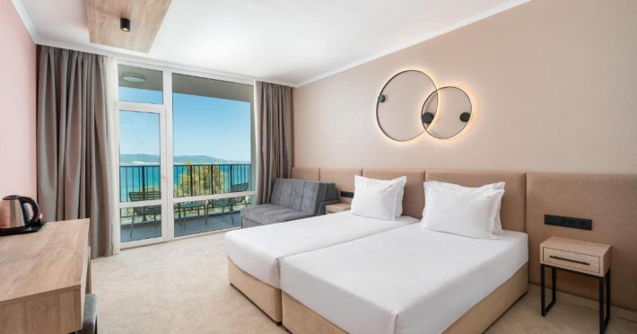 Hotel Festa Panorama **** este situat in Nessebar, la doar cativa metri distanta de plaja. Plaja: Plaja cu nisip la 150 m. Intrarea in mare este lina. Cazare: In hotel sunt camere duble mobilate modern si apartamente cu panorama fabuloasa. DBL 2+1/2+2: Suprafata aproximativa de 22 m2. Camerele au doua paturi de o persoana sau un pat dublu, o canapea extensibila, aer conditionat centralizat, TV LCD, mini frigider, telefon, WiFi, baie cu cada, uscator de par, articole de toaleta, balcon. Cazare maxim 2 adulti si 2 copii sau 3 adulti. DBL 2+1/2+2 SEA: Suprafata aproximativa intre 22 si 25 m2. Camerele au doua paturi de o persoana sau un pat dublu, o canapea extensibila, aer conditionat centralizat, TV LCD, mini frigider, telefon, WiFi, baie cu cada, uscator de par, articole de toaleta, balcon. Cazare maxima 2 adulti si 2 copii sau 3 adulti. 1-BR APP 2+2: Suprafata aproximativa de 50 m2. Apartamentele cu vedere la mare au doua camere separate separate printr-o usa - un dormitor mare cu pat dublu si baie cu cada si un living cu zona de relaxare cu o canapea extensibila, 2 toalete si un balcon spatios cu sezlonguri si vedere la mare. Apartamentele au si aer conditionat centralizat, TV LCD, mini frigider, telefon, WiFi, baie cu cada, uscator de par, articole de toaleta. Cazare maxima 2 adulti si 2 copii sau 3 adulti si 1 copil. Un patut este disponibil gratuit la cerere prealabila. Animalele de companie nu sunt permise in hotel. Hotelul si facilitatile sale sunt potrivite pentru persoanele cu mobilitate redusa. Exista 3 camere duble separate pentru ei. Despre hotel: Complexul dispune de restaurant principal tip bufet, club de noapte, lobby bar, bar la piscina, doua sali de conferinte. Sport si SPA: Hotelul are piscine interioare si exterioare, teren de volei, sala de sport pe strada si o zona spatioasa de relaxare in stil marocan, cu piscina interioara incalzita, jacuzzi si sala de sport. ALL INCLUSIVE la FESTA PANORAMA **** pentru sezonul 2025 include: Check-in: dupa ora 15:00 Check-in: pana la ora 11:00 *All inclusive incepe cu cina si se termina cu pranzul.