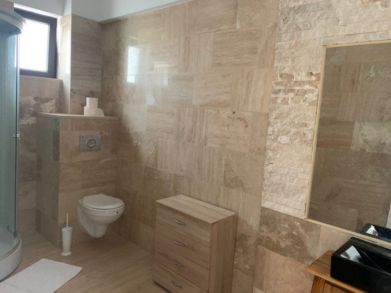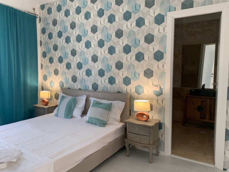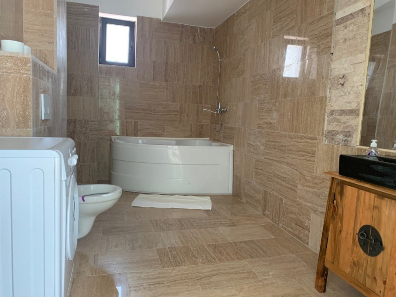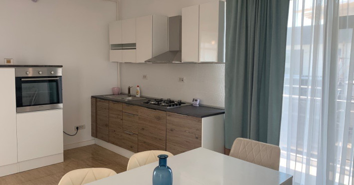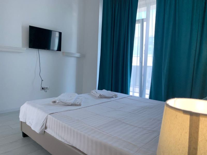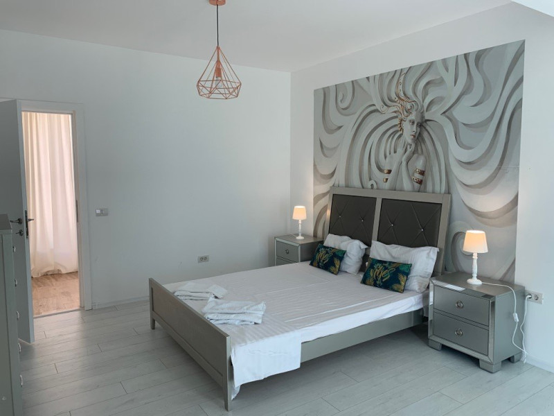 DESCRIERE CAMERE Dotarea apartamentului este una completa, astfel incat oaspetii nostri beneficiaza de tot confortul unei vacante deosebite. Bucataria este dotata cu tot ce isi poate dori un bucatar iscusit, de la vesela pana la toate instrumentele necesare (plita, cuptor, frigider cu congelator, prajitor de paine, esspresor de cafea, etc). De asemenea apartamentul estet dotat cu masina de spalat, uscator de haine, aspirator, aer conditionat, etc. In concluzie, aveti toate cele necesare pentru a petrece o vacanta de exceptie.