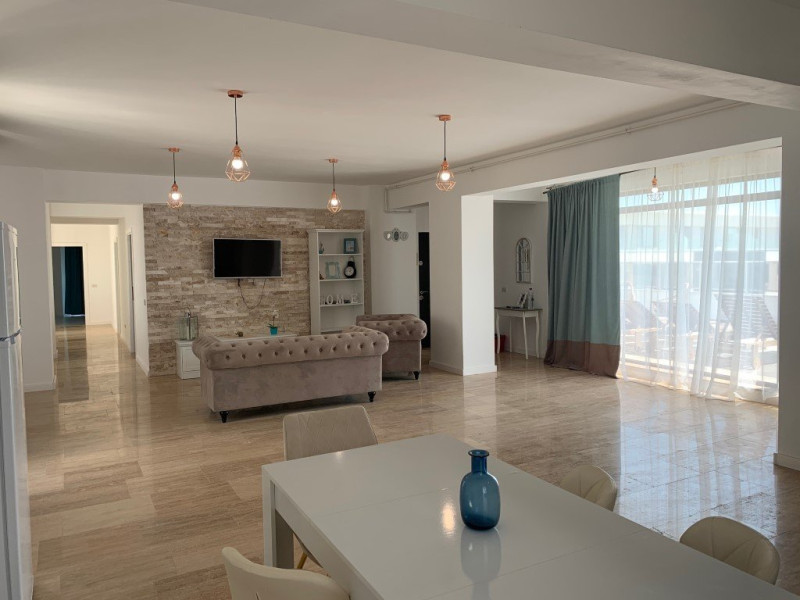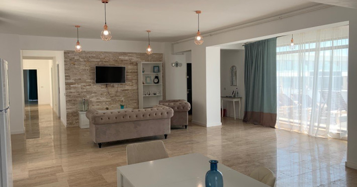 DESCRIERE UNITATE DE CAZARE Locatia se afla in zona centrala a statiunii Mamaia Nord, pe promenada in imediata vecinatatea a plajei Mackerel din statiunea Mamaia Nord. Apartamentul este unul exclusivist si se afla la ultimul etaj (6), fiind de tip penthouse ( 270 mp) beneficiind de un living de peste 60 mp, dressing, doua dormitoare, 3 bai ( 2 dintre acestea cu cada) o terasa generoasa dotata cu sezlonguri de plaja si o vedere uimitoare de unde rasaritul este o poveste speciala. Acesta este finalizat in 2021, cu dotari si finisaje deluxe, realizate la un nivel calitativ ridicat.Avand in vedere ca nu avem serviciu de receptie, pentru a va asigura un check-in rapid, va rugam sa ne furnizati informatii privind ora sosirii prin telefon, mesaj, whatsapp, email cu cel putin 3 ore inainte de sosirii. TELEFON: 0735057100