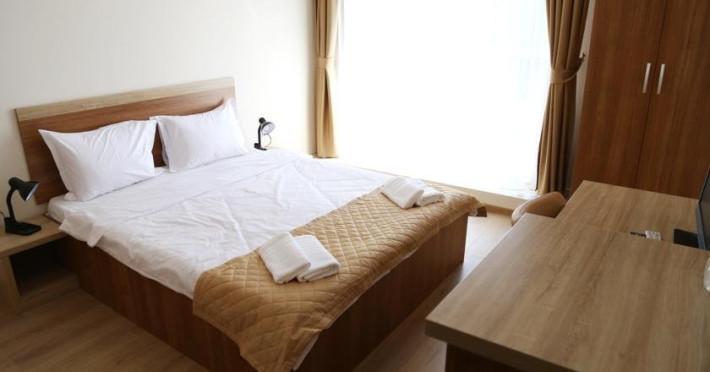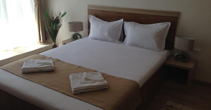 DESCRIERE CAMERE Dotari camere: aer conditionat, TV -LED, minibar, baie cu dus, internet -wi-fi, pat matrimonial 160/ 200. Camerele hotelului NU sunt prevazute cu balcon. Numar total camere: 190 Duble: 190
