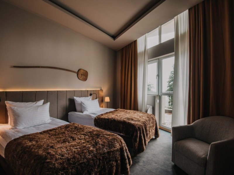 Camerele Standard - sunt mai mici ca cele superioare, nu au balcon, geamurile doar se rabateaza si nu sunt indicate pentru fumatori, au view spre padure, nu se poate introduce pat suplimentar.