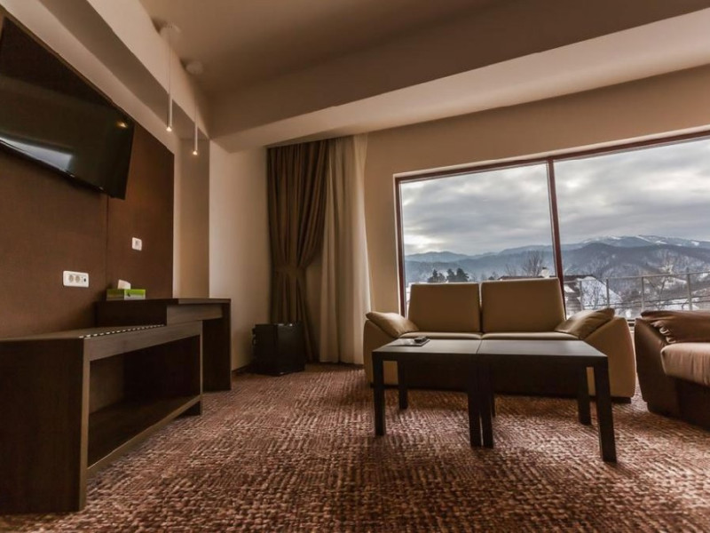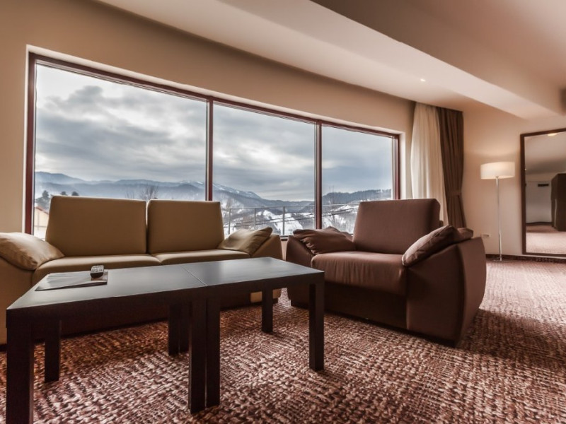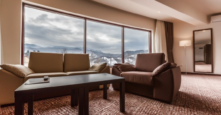 FACILITATI UNITATE Receptie 24 / 24 Acces la piscina interioara si sala fitness Lobby Centrul de wellness va asteapta cu sala de FITNESS, dotata cu echipamente TehnoGym de ultima generatie, cu asistenta din partea unui profesionist (la cerere). Dupa antrenament, puteti sa continuati rasfatul in zona de relaxare a zonei SPA, unde veti regasi pisicina interioara, conceputa intr-un cadru exceptional, cu o temperatura ideala a aerului si a apei. Din interiorul piscinei, puteti admira privelisti superbe, in toate cele patru anotimpuri. Zona SPA detine si zona de MASAJ, locul in care beneficiile acestei terapii va vor ajuta sa descoperiti starea de bine la cele mai inalte cote! Fie ca este vorba de masaj de relaxare, de detensionare sau masaj terapeutic, personalul specializat vor face ca fiecare moment sa fie unul de rasfat maxim! In sezonul cald, inconjurati de privelisti montane senzationale, cum stim ca nimic nu e mai placut decat relaxarea pe un sezlong confortabil, va invitam sa va lasati mangaiati de razele soarelui pe terasa externa a hotelului, si de ce nu? sa savurati un cocktail!